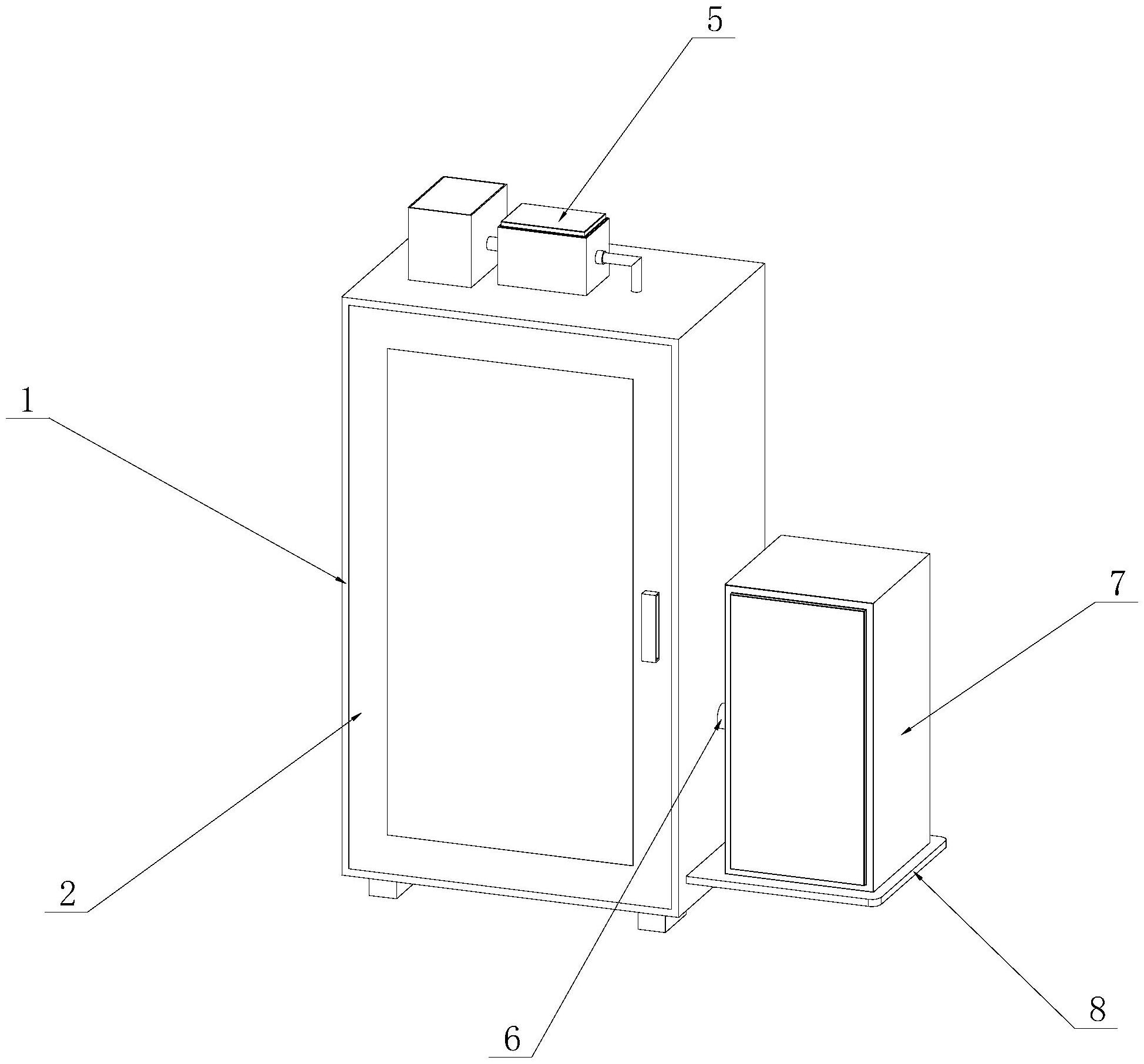 本实用新型公开了一种天然气过滤器滤芯吹扫装置,属于天然气过滤器滤芯清理技术领域,一种天然气过滤器滤芯吹扫装置,包括放置箱和设置于所述放置箱开口端的密封门,所述放置箱内腔底部表面设置有底座,所述放置箱内腔顶部表面设置有吹扫组件,所述放置箱顶部表面一侧设置有供气组件,所述吹扫组件用于配合底座以实现对天然气过滤器进行夹持,所述供气组件用于配合吹扫组件以实现对夹持的天然气过滤器进行吹扫处理,本实用新型可将高速气流按照移动规律充入至天然气过滤器滤芯内部,以便于能够使得气流对天然气过滤器滤芯进行全面吹扫,使得处于天然气过滤器滤芯折角处清理,提高了天然气过滤器滤芯清洗效果。