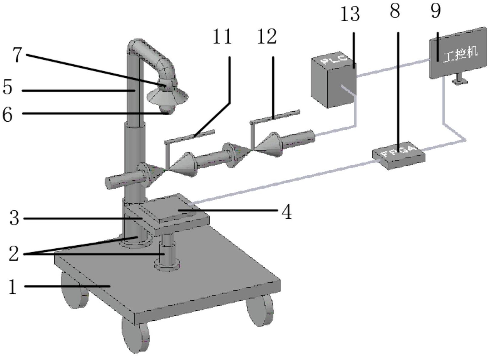 本实用新型公开了一种管道阀门内漏检测装置,包括基座,基座上设置有探测器,基座上固接有连杆,连杆远离基座的一端设置有射线源,射线源位于探测器正上方,射线源与探测器之间配设有检测平台,检测平台连接有阀门控制设备,阀门控制设备连接有工控机,工控机连接有数据采集处理设备,数据采集处理设备连接探测器;解决了现有技术中存在的阀门内漏检测精度不高的问题。
