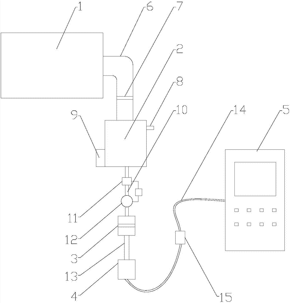 本实用新型公开了一种谷物重金属离子含量快速检测系统,其包括粉碎机、浸提罐、膜式过滤器、检样罐和感应耦合等离子体质谱仪,粉碎机的出料口通过进料管与浸提罐进料口连通,进料管内设有筛网;浸提罐的侧壁上设有酸液注入口及微型振动电机,浸提罐底部与膜式过滤器的入口之间通过样液管连通,膜式过滤器的出口通过滤液管与检样罐的进口连通,检样罐的出口通过进样管与感应耦合等离子体质谱仪的进样口连通,进样管上设有进样计量泵。本实用新型的优点在于,检测仪结构合理,可满足对于谷物重金属离子含量检测的要求,检测快速高效;整个谷物重金属离子含量检测过程人工参与程度低,对操作人员要求低,可满足工业化连续检测的要求。