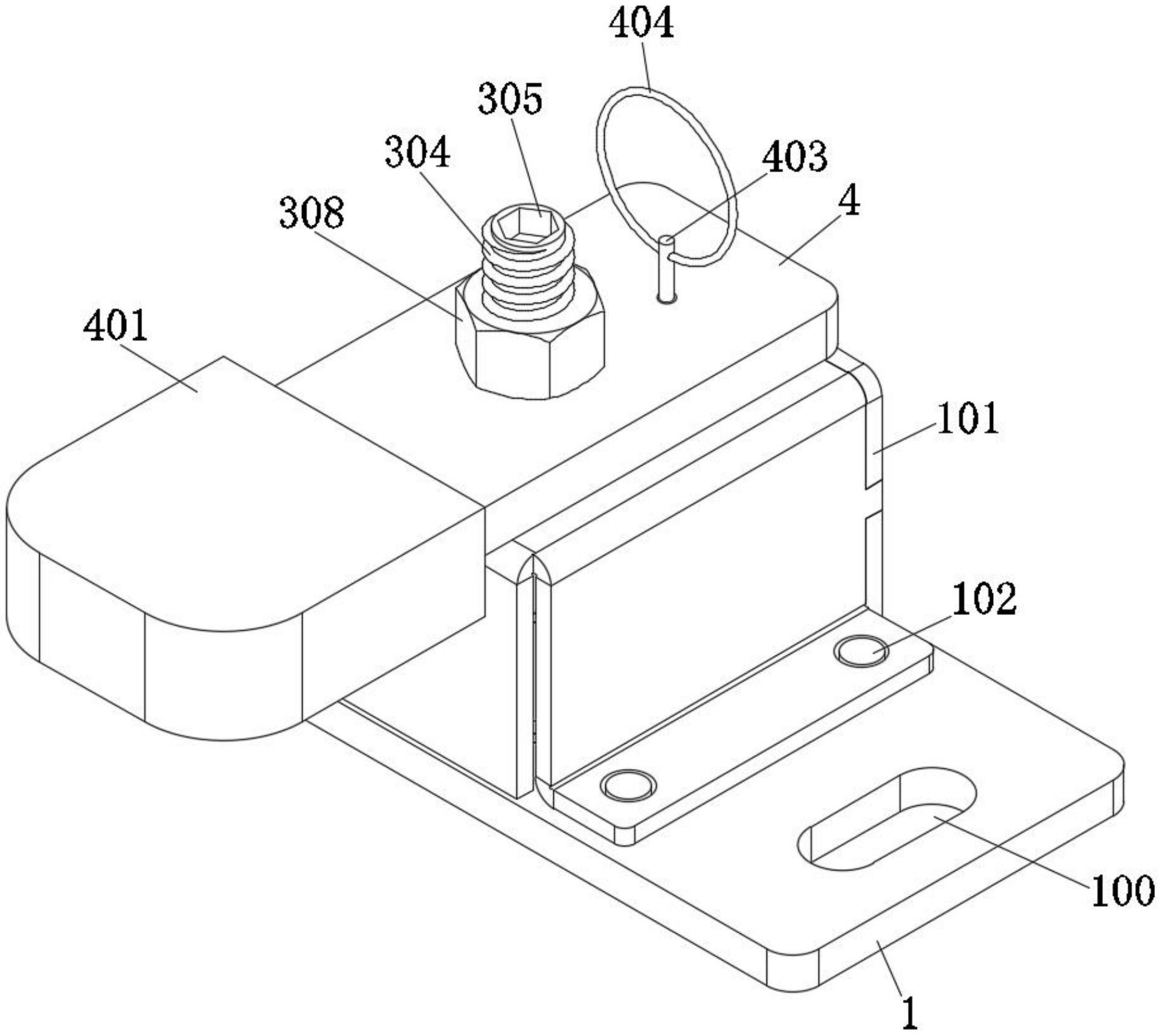 本实用新型公开了一种新型结构的插销式快速夹,包括基板、第一通槽、壳体、销钉、限位孔、安装座、杠杆、第一连杆、第一连接板、导向孔、第二连接板、滑槽、第一导向杆、第一弹簧、插销板、直线轴承、套筒、沟槽、第二导向杆、第二弹簧、螺纹柱、六角槽、第一螺母、垫圈、第二螺母、压板、第二连杆、拉环、第三弹簧和卡块;本实用新型设计有杠杆结构,可以轻松带动插销板,较之现有的拉动式结构更加方便省力;本实用新型设计有可调节的螺纹柱,可以对压板的高度进行调节,适用于压紧不同厚度规格的物品;且该压板设计为可转动式的,方便取放物品,其上设计的定位结构,可以在压板压紧后对其进行限位,从而避免压板发生偏转。