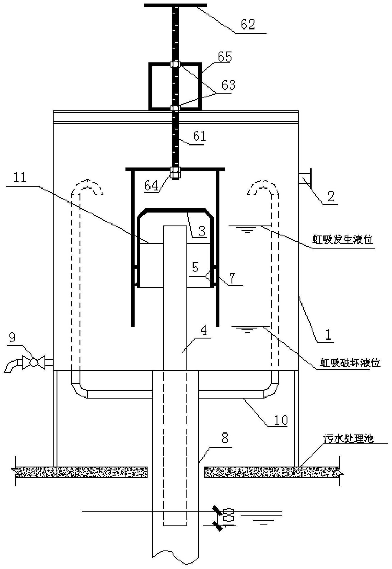 本发明实施例提供了一种脉冲布水器,该脉冲布水器包括:集水罐,固定钟罩,中央虹吸管,调节钟罩及调节组件,集水罐上开设有进水口,固定钟罩位于集水罐内,调节钟罩套在固定钟罩外,且调节钟罩的开口朝向与固定钟罩的开口朝向相同,调节钟罩的高度大于固定钟罩的高度,中央虹吸管的一端位于固定钟罩内,且中央虹吸管与固定钟罩之间留有空隙,中央虹吸管的高度低于进水口的高度,调节组件与调节钟罩固定连接。通过调节组件可对调节钟罩的开口与固定钟罩的开口之间的高度差进行调节,通过调节高度差,可以调节破坏虹吸效应的液位,从而实现了对脉冲布水器的脉冲布水的频率和脉冲水量的调节。