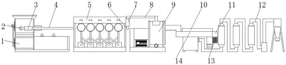 本实用新型公开了藕粉的高效分离提纯系统,包括渣浆分离机,所述渣浆分离机的前侧固定连接有第一水泵,所述第一水泵的两侧分别连通有第一连接管和第二连接管,所述第一连接管的一端与渣浆分离机的出浆端连通。本实用新型通过设置渣浆分离机、第一连接管、第一水泵、第二连接管、淀粉旋流器、第三连接管、第二水泵、第四连接管、刮刀离心机、罩壳、壳体、气流干燥机、电机、干燥管、螺旋叶片、第一开口、金属导热网、第二开口、加热器、第二隔热层、从动锥齿轮、旋转杆、第一隔热层和主动锥齿轮的配合使用,解决了现有的用于藕粉的分离提纯系统工作效率较低的问题,该藕粉的高效分离提纯系统,具备工作效率高的优点。