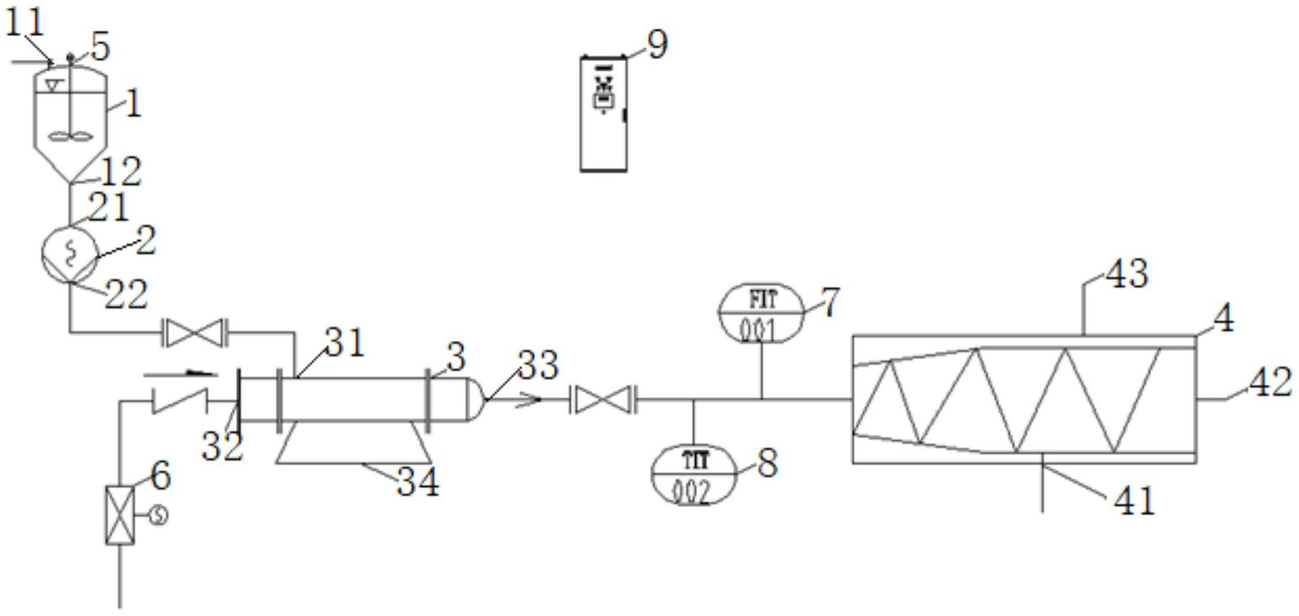 本实用新型公开了一种餐厨垃圾沥水提油加热装置,包括:加热器包括物料进口、蒸汽进口和物料出口;物料进口通过沥水输送泵与沥水储存罐连通,蒸汽进口通过蒸汽调节阀与高温蒸汽管路连通,物料出口与三相离心机连通;温度传感器设于物料出口与三相离心机之间的管路上;控制柜,其分别与沥水输送泵、蒸汽调节阀和温度传感器信号连接。本实用新型的有益效果为:通过高压蒸汽与垃圾沥水直接接触的方式对输送中的垃圾沥水进行连续加热,提高了垃圾沥水的加热速度,蒸汽消耗量少,提高了提油效率且降低了垃圾沥水的加热成本;独立的控制柜根据加热器出口的温度,对进入加热器的物料和蒸汽量进行实时调控,能够精准控制进入三相离心机的物料温度和流量。