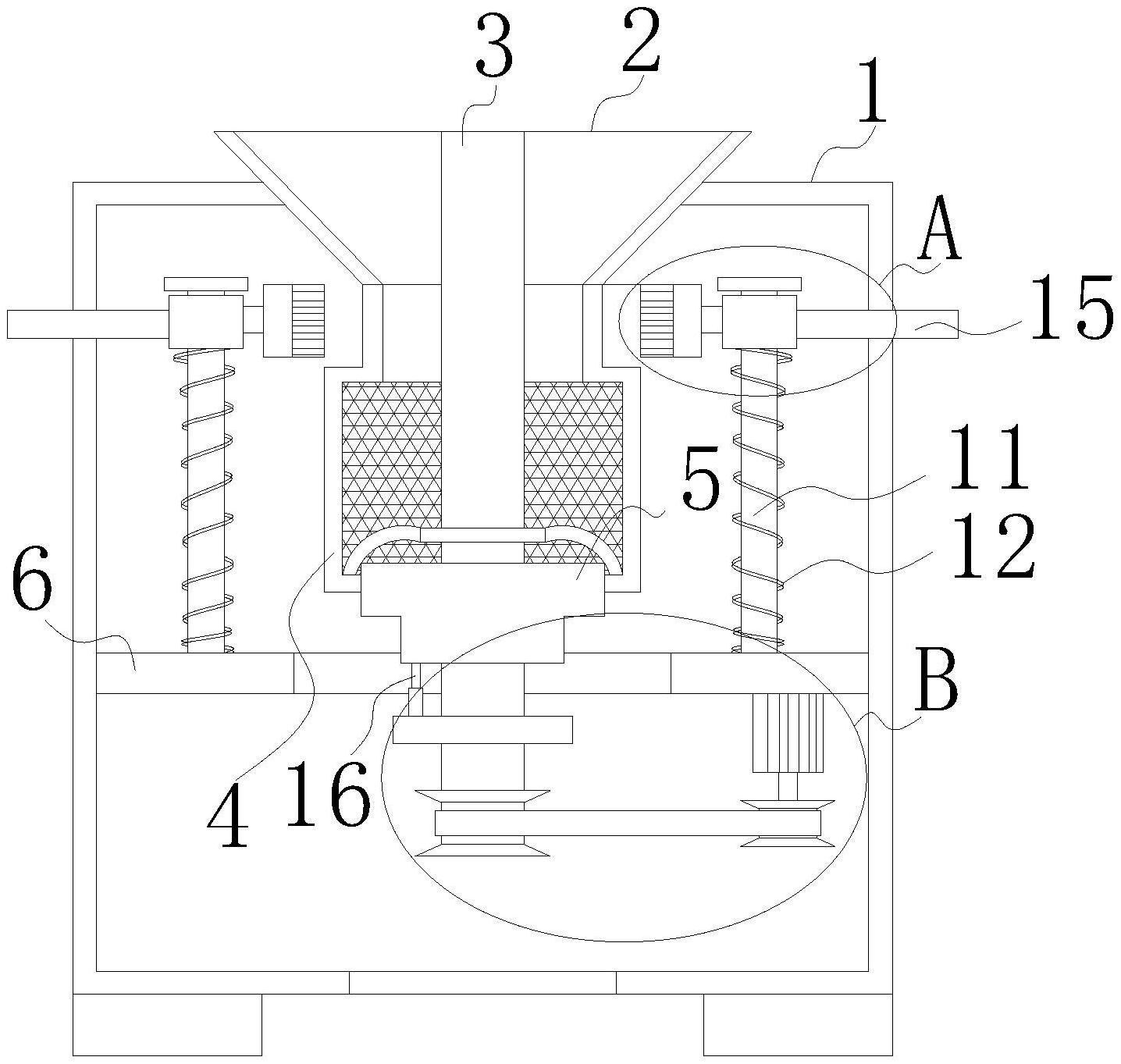 本实用新型涉及畜牧养殖用垃圾处理技术领域,公开了一种畜牧养殖用垃圾处理机,包括箱体、进料斗和支撑板,还包括分隔筒、过滤箱和毛刷,所述进料斗的底部贯穿于箱体的顶部,所述进料斗的底部与过滤箱的顶部固定连接,所述过滤箱的侧面固定安装有过滤网,所述分隔筒的表面通过支架与过滤箱内部的底部固定连接,所述支撑板的侧面与箱体的内壁固定连接,所述支撑板的顶部与滑竿的底部固定连接,所述滑竿的表面与滑套的内环活动套接,所述滑套的底部与弹簧的顶部固定连接,所述弹簧的底部与滑竿的底部固定连接,所述滑套的一端与握杆的一端固定连接,所述滑套的另一端固定安装有毛刷。本实用新型造成脱水效果不理想的问题。