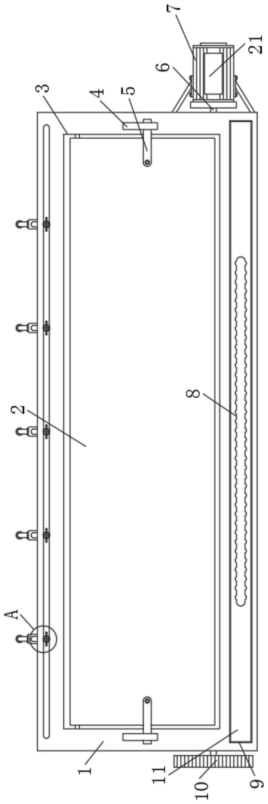 本实用新型属于畜牧技术领域,且公开了一种用于淮南黑猪健康养殖场的隔离装置,包括猪舍,所述猪舍的一侧开设有第一安装槽,所述第一安装槽的内部转动连接有挡板,所述猪舍外壁靠近第一安装槽的两侧位置处均安装有限位板,所述挡板外壁靠近两个限位板的一侧位置处均转动连接有挡杆,所述猪舍顶部对称开设有两个调节槽,本实用新型通过调节杆插入至调节槽中,通过拧紧调节螺栓,使调节杆固定于使用者需要的位置处,从而将使用者需要数目的分隔板固定于使用者需要的位置处,让猪舍规格便于调节,可以依据黑猪数目进行调节,便于使用者对不同体型的黑猪进行分隔养殖,降低了黑猪的养殖难度。