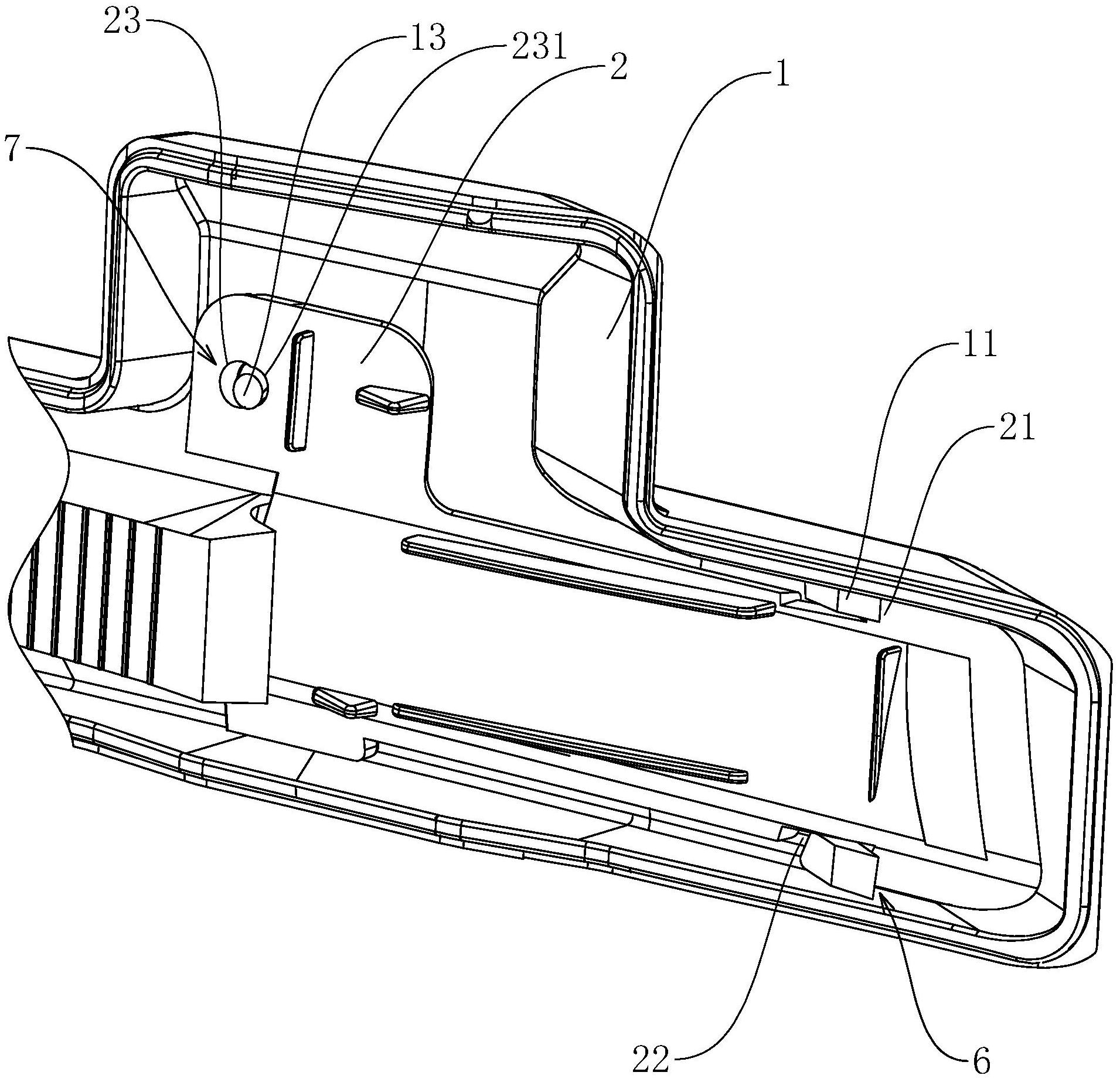 本申请涉及一种汽车转向灯结构,其包括灯罩、装饰板、发光组件和底座板,所述装饰板和发光组件设置在灯罩和底座板之间,所述灯罩和装饰板之间设置有若干热铆固定结构。本申请具有减少转向灯结构中灯罩和装饰框在车辆行驶中异响产生的效果。