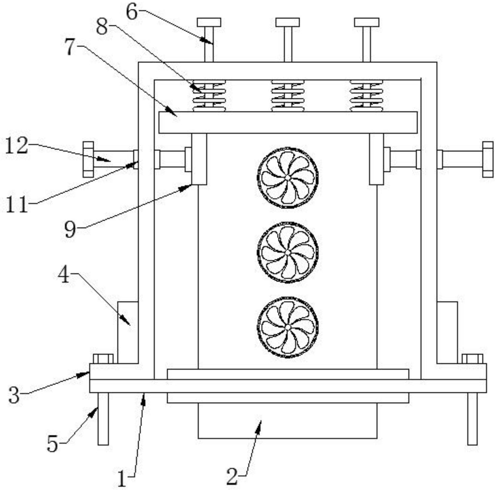 本实用新型公开了一种具有辅助支撑的防抖显卡,涉及显卡技术领域包括安装板,所述安装板上安装有显卡本体,所述安装板的顶部通过锁紧螺栓安装有防护架,所述防护架和安装板之间安装有缓冲机构,所述防护架为U型架,所述防护架的顶部安装有活动杆,所述活动杆为T型杆。相较于现有技术,本实用新型通过活动杆、压板、弹簧、卡块、螺纹块和螺纹杆对显卡进行固定,方便不同品牌不同规格的显卡配合使用,使用灵活性非常高,同时采用缓冲机构作为防护架和安装板之间的防护机构,弹簧作为压板和防护架之间的防护机构,在锁紧螺栓完成固定后能有效对显卡本体进行防护,降低显卡本体时由于风扇产生的震动,从而减少机箱的异响。