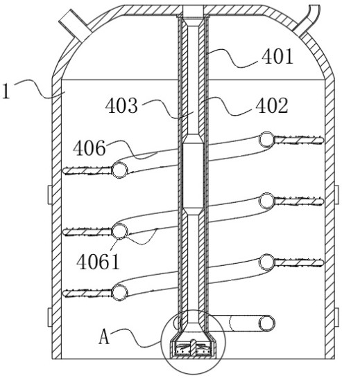 本发明涉及饲料发酵废气处理装置技术领域,具体涉及一种清洁饲料发酵废气处理装置及其使用方法,提出如下技术方案:包括反应腔和安装在其一侧的进气管,和用于增加废气处理效率的增速机构,包括空心管,空心管的内部设置有竖管,竖管的内部开设有两组加速腔,加速腔的底面转动连接有转轴,转轴的表面等距安装有多组驱动叶,空心管的外侧套设有弹簧管;以及用于加快废气反应速度的搅拌件,包括多组转动安装在弹簧管表面的圆杆,圆杆的表面等距环绕安装有多组叶片,且叶片为螺旋结构,多组叶片之间等距安装有多组安装有刺环。本发明通过各个零部件之间的配合使用,能够在对废气处理时,能够加快废气处理的效率的同时保证废气处理的质量。