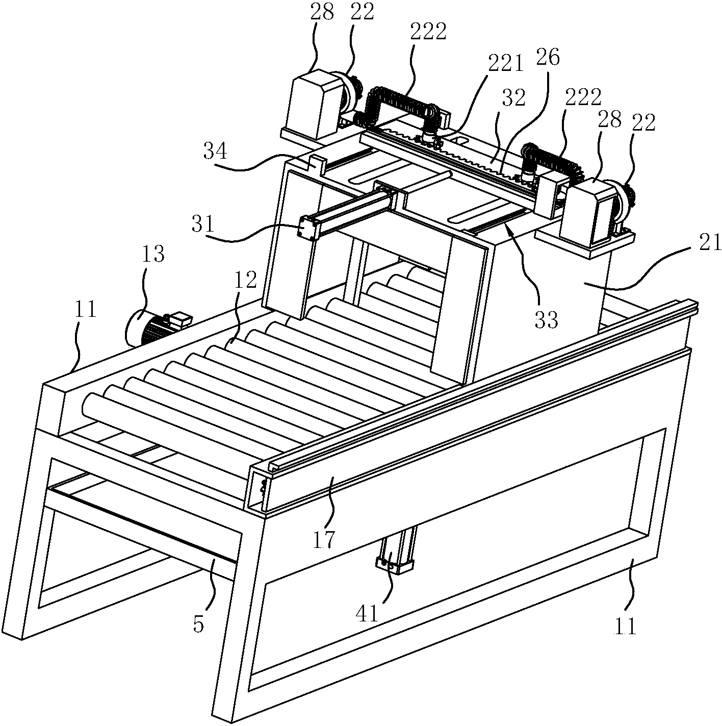 本实用新型公开了一种带有传送装置的干粉袋清理箱,其技术方案要点是:包括传送装置以及用于对传送装置上的干粉袋的表面进行清理的清理箱,传送装置包括支架、与支架转动连接的传动辊以及驱动电机,清理箱包括箱体以及设置在箱体两侧的吸风机,吸风机的进风口固定设置有波纹管,波纹管远离吸风机的一端固定设置有贯穿箱体顶部的进风管,箱体的顶部设置有用于推动进风管在箱体顶部往复移动的推动机构,推动机构包括设置在箱体一侧面的电动推杆以及与电动推杆的伸缩杆一端固定连接的移动板。其优点是该清理箱能够提高对干粉袋上的干粉的清理效率,防止干粉袋离开传送装置后,干粉袋表面上依然存留有大量的干粉。