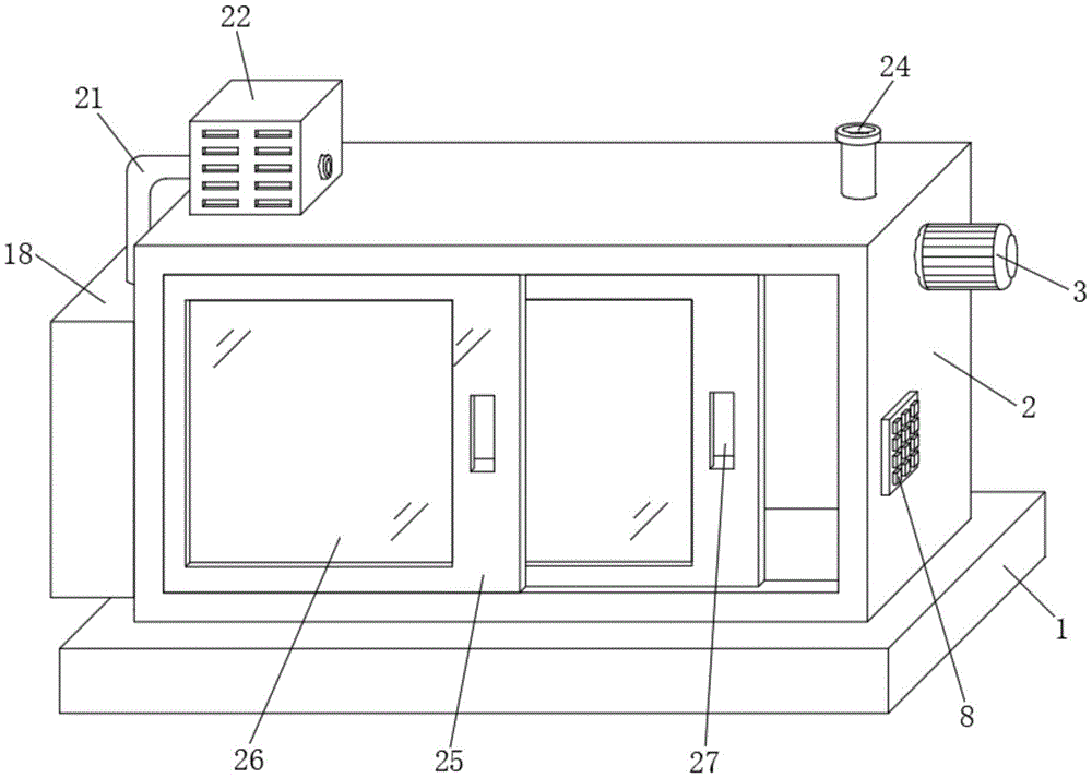 本实用新型公开了一种高性能扬料烘干机,包括底板,底板的顶部固定连接由烘干箱,烘干箱一侧顶部固定安装有第一伺服电机,烘干箱的一侧且位于第一伺服电机的下方固定安装有控制面板,烘干箱内壁的顶部之间转动连接有丝杆,第一伺服电机的输出轴延伸至烘干箱的内部且通过联轴器与丝杆固定连接,本实用新型所达到的有益效果是:本实用新型结构紧凑,操作简单便捷,实用性强,通过设置传动机构,带动两个带有螺旋叶片的转动轴进行转动,从而将设备底部的物料向上翻转,然后再配合丝杆传动,带动扬料机构来回往复运动,从而更好的对设备内部的物料进行扬起,再配合设备内部流通的热空气,对翻转的物料进行持续烘干,从而极大的增加了设备烘干的效率。