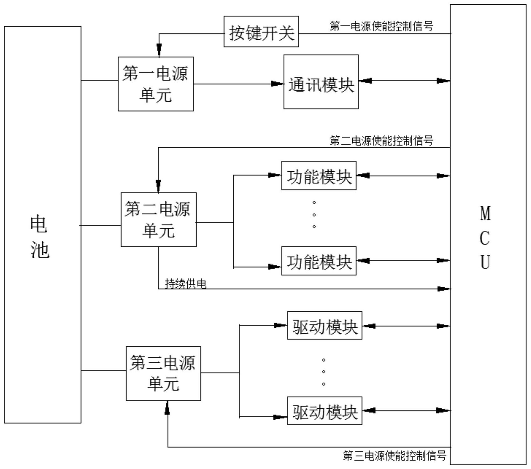 本发明提供了一种移动机器人的节能电源系统、方法及移动终端,包括电池、MCU、电源模块、驱动模块、功能模块及通讯模块;电源模块、驱动模块、功能模块及通讯模块均与所述MCU相连;电源模块包括分别与电池及MCU相连的第一电源单元、第二电源单元及第三电源单元,第一电源单元与通讯模块相连,用于为通讯模块供电;第二电源单元与MCU及功能模块相连,用于为功能模块及MCU供电;第三电源单元与驱动模块相连,用于为驱动模块供电;所述MCU向第一电源单元、第二电源单元及第三电源单元发送电源使能控制信号,从而控制第一电源单元、第二电源单元及第三电源单元是否为其对应的负载供电;其中,第二电源单元持续向MCU供电。
