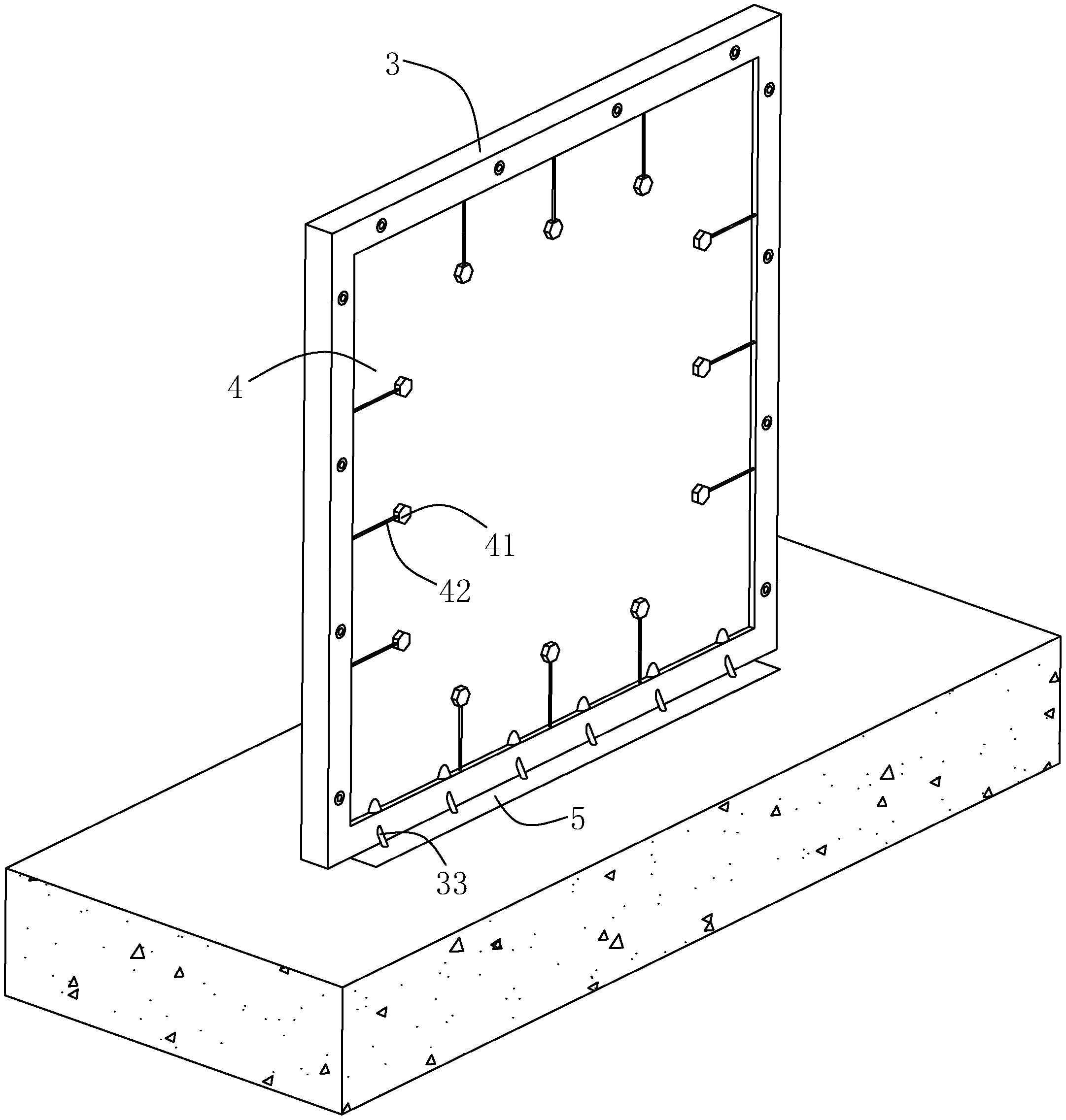 本实用新型公开了一种可拆卸式泄压墙,属于一种泄压墙;其技术方案要点是包括安装在房屋承重墙以及横梁上的矩形的框架以及固定连接在框架内部的轻质墙体;房屋承重墙以及横梁上均埋设有固定螺杆,框架上转动连接有和固定螺杆螺纹连接的套筒,套筒能够沿着自身的轴线转动;框架靠近地面的内壁上固定连接有倾斜的圆筒,圆筒的斜上端向房屋的内部方向倾斜,圆筒内插接有固定螺栓,大地内埋设有固定块,固定螺栓的末端穿过框架和固定块螺纹连接;轻质墙体上安装有多个均匀分布的泄爆螺栓。本实用新型解决了常规的泄压墙更换时速度低下的问题,达到了能够提高泄压墙更换速度,提高工作效率的效果。