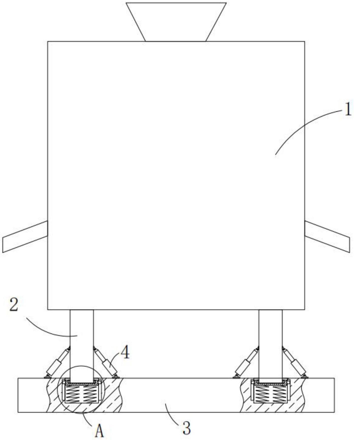 本实用新型公开了一种具有减震功能的水泥粉磨装置,包括水泥粉磨机本体和底座,所述底座上开设有第一凹槽,所述第一凹槽的内部固定安装有弹簧,所述弹簧的一端固定连接有固定板,所述固定板滑动安装于第一凹槽的内部,所述固定板上开设有第二凹槽,所述水泥粉磨机本体的下端固定安装有支腿,所述支腿的一端固定插接于第二凹槽的内部,所述底座和支腿上均固定安装有耳座,两组所述耳座之间通过圆杆转动安装有液压杆本实用新型在一定程度上提高了粉磨机的减震效果,使粉磨机工作过程更加平稳和安静,也减轻了对粉磨机内部零件的损伤,进而提高了粉磨机的使用寿命。