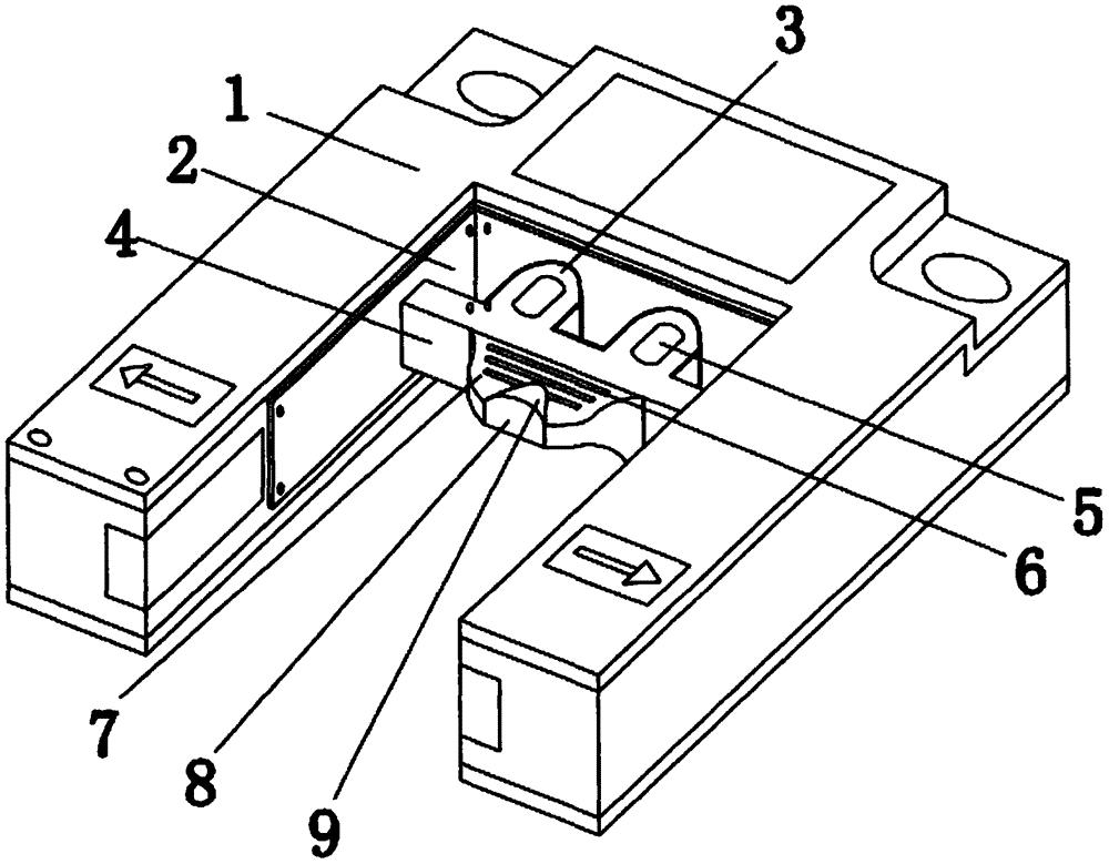 本实用新型公开一种数字化实验室用便携光电门传感器,包括传感器本体,所述传感器本体的内侧壁固接有内框板,所述内框板的内侧固接有横梁架,所述横梁架的前侧一体成型有手柄,所述手柄的顶部前侧一体成型有凸起,所述横梁架的后端两侧均一体成型有翼耳,所述翼耳的内侧开设有安装孔。该数字化实验室用便携光电门传感器,操作者可两指手持手柄部拿起互相固接的横梁架和传感器本体,拿起后可将传感器本体的外框边缘放置于与其适配的放置槽中,更加便于拿取传感器,且便于将传感器直接全部的安放在放置槽中,凸起防止两指拿取时在手柄上滑落,增加拿取时的稳定性。