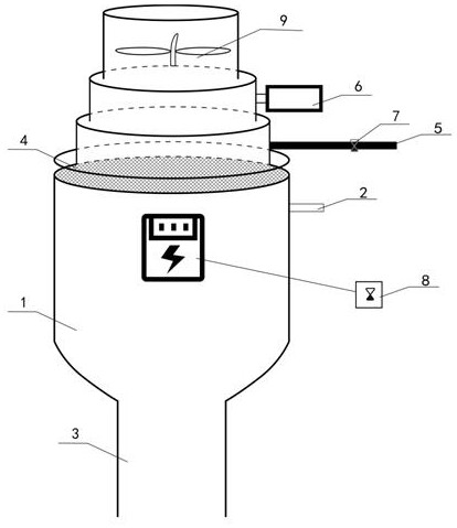 本实用新型公开了一种聚烯烃弹性体进料装置反吹结构,其特征在于:包括进料腔体(1),在进料腔体(1)侧面设有进料口(2),进料腔体(1)下面设有出料口(3),进料腔体(1)上面设有风机(9),进料腔体(1)的风机(9)和进料口(2)之间设有过滤网(4),在过滤网(4)上方的进料腔体(1)上连接反吹风管(5)。本实用新型在进料装置加入反吹结构,每吸料一次或两次打开反吹结构的反吹风管,让风力强制把过滤网疏通,把附着在过滤网上的粉料吹下去,避免过滤网堵塞造成设备死机。延长过滤网的使用周期,提高生产效率。