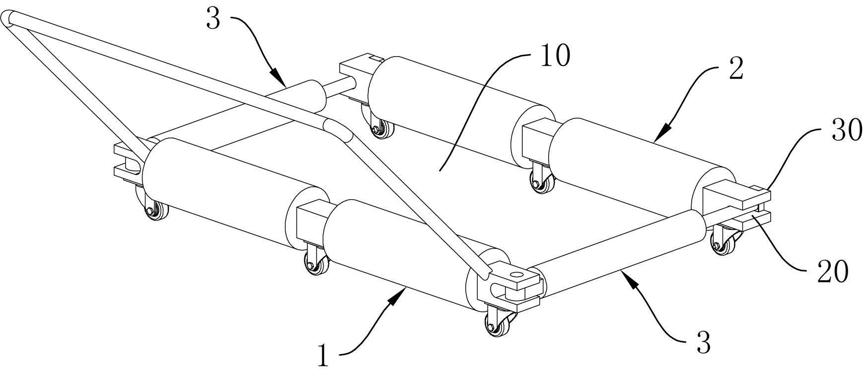 本实用新型涉及一种钢卷移送装置,其特点在于包括前行走托架、后行走托架、两个伸缩机构,其中前行走托架、后行走托架呈前后并排布置,在前行走托架与后行走托架之间预留有承托间隙,两个伸缩机构分别设置在前行走托架的左右端上,并使两个伸缩机构的伸缩端分别与后行走托架的左右端相接,所述后行走托架能在两个伸缩机构的驱动下做靠近前行走托架的运动。本实用新型具有使用方便、易于上下钢卷、移送效率高、对人需求量少、使用成本低、安全性极高等优点。