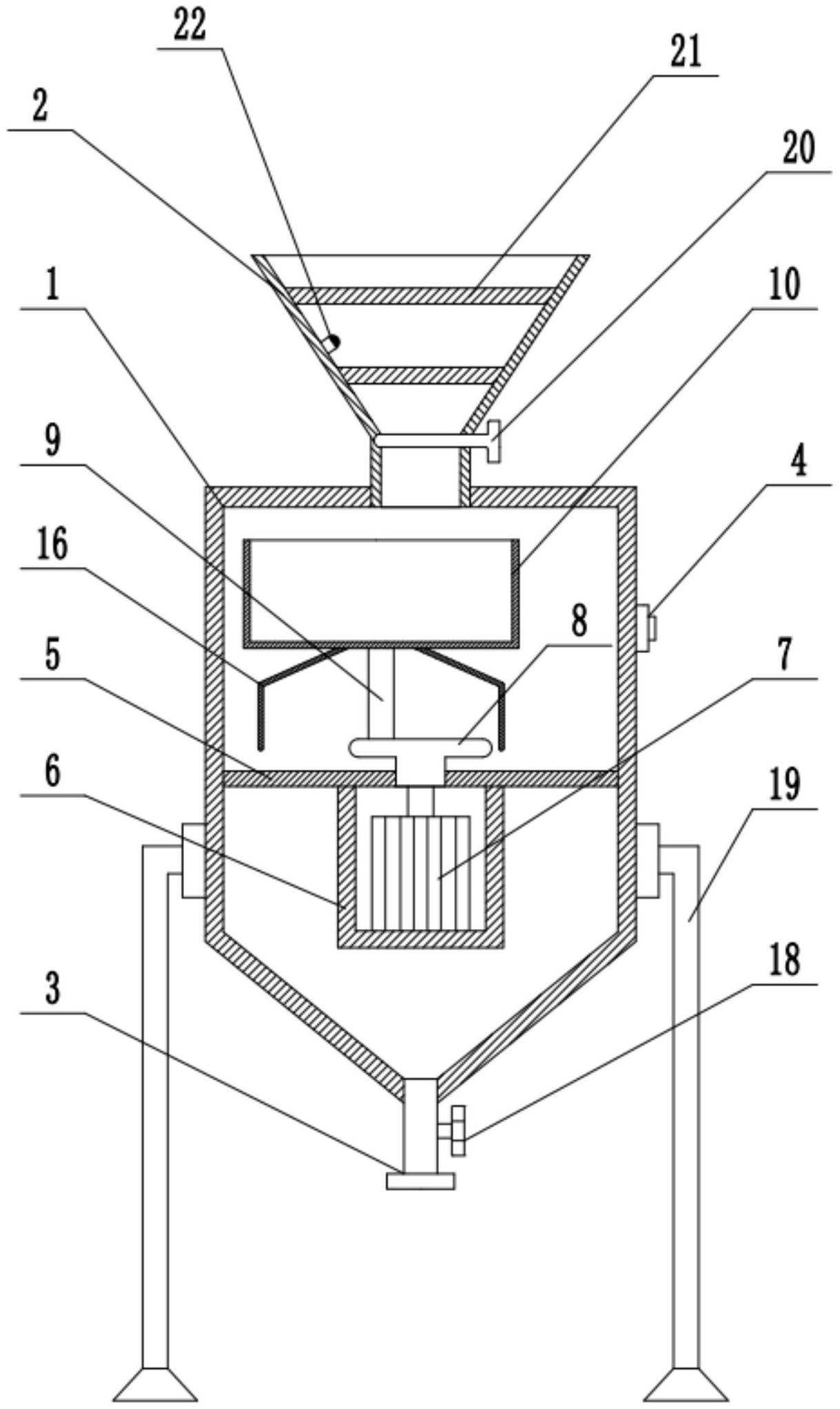 本实用新型涉及花椒加工技术领域,具体公开了一种花椒壳粒分离装置,包括分离箱、加热机构、设置在分离箱内的分离机构和在分离箱内驱动分离机构转动的驱动机构,分离箱底部设有出料管,分离箱上设有控制器,本实用新型解决了传统的花椒壳粒无法分离彻底的问题。