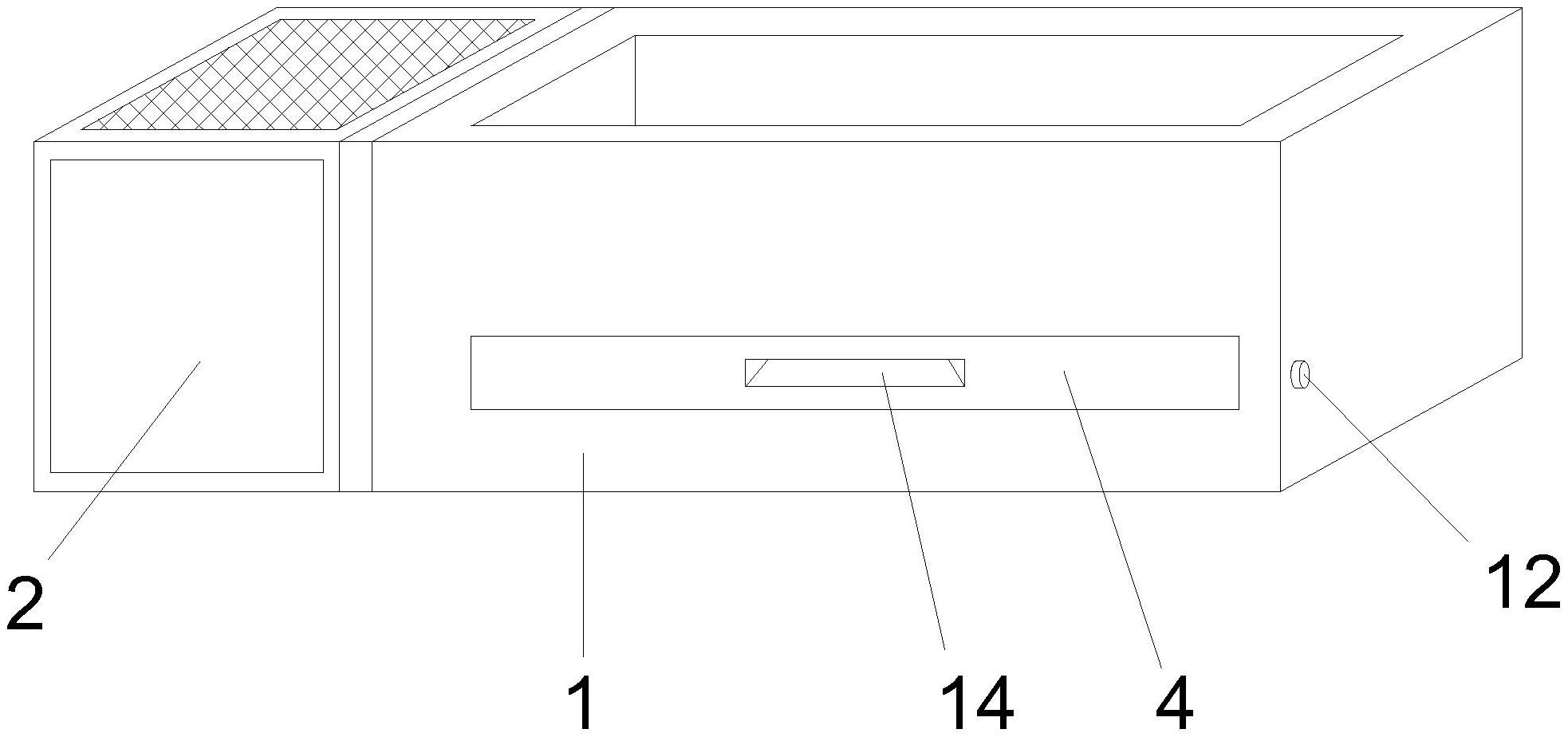 一种可调节的茶叶连续萎凋装置,其结构包括萎凋槽座,萎凋槽座左侧设有电热风机箱,将茶叶铺设于茶叶铺设板上,电热风机箱运转,将热流吹入出风窗口,经过伸缩调节管,最后由导风栅格吹入萎凋槽座内部,进行萎凋工作,在萎凋结束后,无需关闭电热风机箱,拔出固定插销后,工作人员通过拉动槽将封闭板拔出出料通道,封闭板带动茶叶铺设板伸出萎凋槽座外,工作人员直接将茶叶扫入载料工具内,然后在茶叶铺设板上铺设下一批的茶叶,铺设完毕后,将封闭板重新推入封闭,直接进行下一批的萎凋工作,伸缩调节管可进行伸缩调节,调节导风栅格输出方向,采用的连续萎凋结构,可减少预热所需的时间,同时提高萎凋工作的便利性。