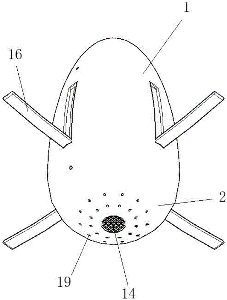 本实用新型涉及一种新型多功能瘤胃监测装置,包括:由第一壳体和第二壳体形成的呈上轻下重的壳体;包覆壳体的保护层;在第二壳体内设置有永磁体、pH传感器、第一温度传感器、第一压力传感器、处理器和电源单元;以及保护pH传感器的过滤网。其优点在于,通过重量分配,使监测装置上轻下重,进而使监测装置能够漂浮在胃液中不沉于胃液的底部;能够长时间实时获取瘤胃的pH、温度、压力和蠕动等数据,便于相关人员进行研究分析;整个装置由耐腐蚀材料制成,并且电源单元能够提供长时间的电能供给,使监测装置能够长时间使用;装置的形状进行合理设计,避免反刍时离开瘤胃;壳体集成有永磁体,能够在吸附胃液中的金属物质的同时增加壳体下部的重量。