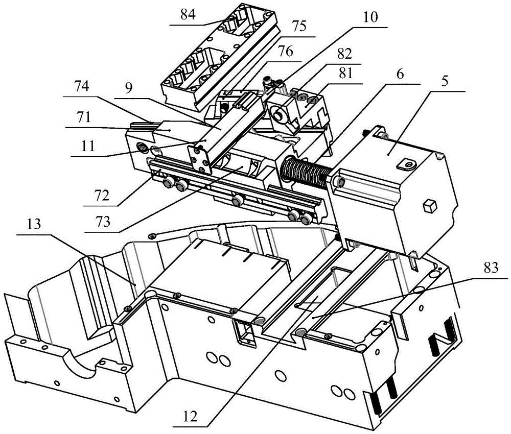 本实用新型公开了一种组合式激光切管中心支架,涉及激光切割领域,包括相互连接的四爪组合支架主体和大通孔齿轮传动组件,所述四爪组合支架主体包括四个垂直、两两相对的单爪支架组件,四个单爪支架组件两两相对设置,每个单爪支架组件均与一滑轮夹持组件相连接,所述单爪支架组件用于带动相对应的滑轮夹持组件运动;所述单爪支架组件包括动力机构、斜楔机构和位移传动机构;所述动力机构与斜楔机构通过丝杆螺母组件连接;所述斜楔机构包括斜楔连接块、平移导轨、平移滑块、斜移导轨、斜移滑块、斜移转接板;所述位移传动机构包括垂直夹紧块和燕尾移动上板。本实用新型的中心支架结构简单、制造容易、密封防尘好、使用成本较低。