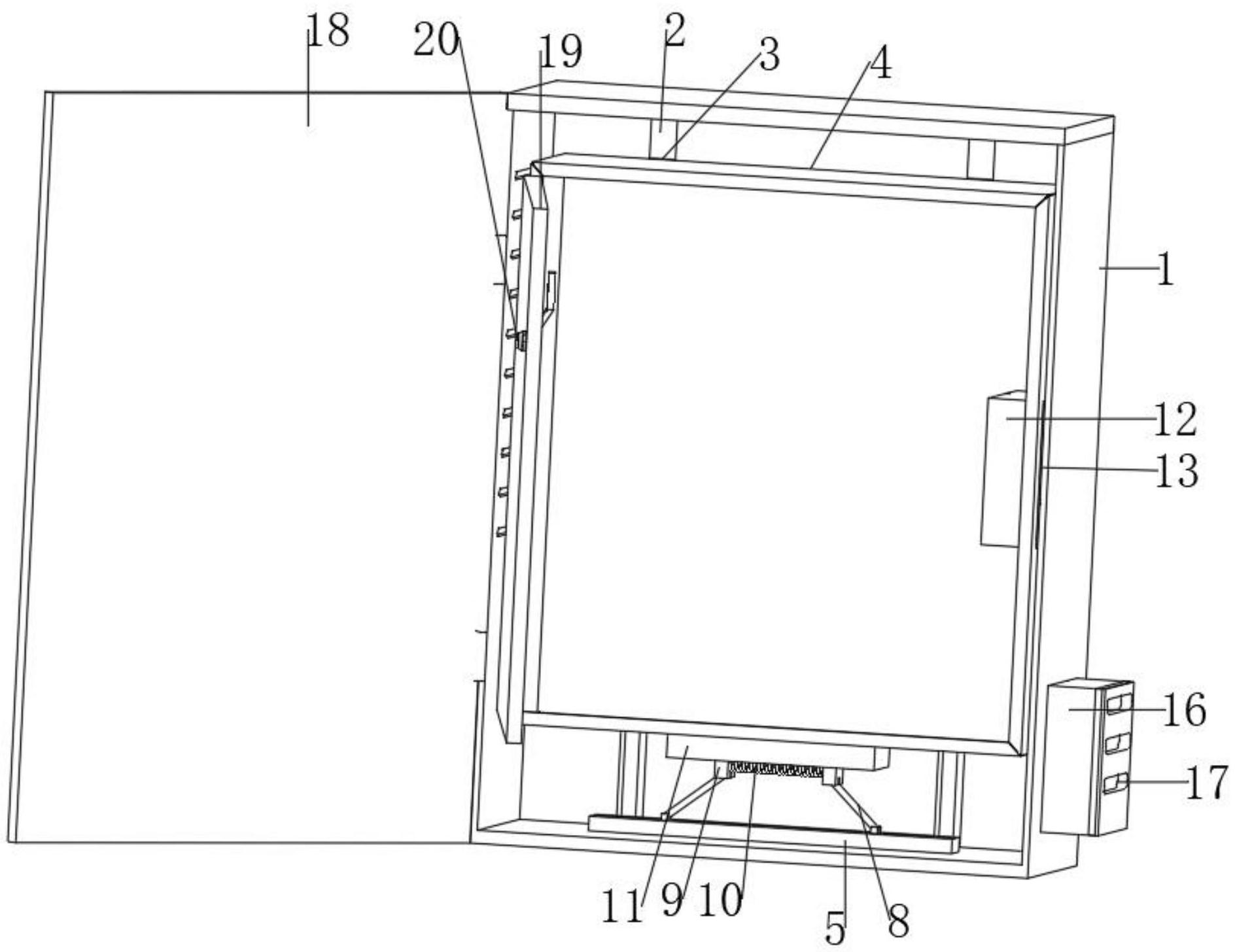本实用新型提供一种稳定散热的高低压开关柜,属于开关柜设备技术领域,该稳定散热的高低压开关柜,包括外箱,外箱的内部设有减震机构,减震机构包括第一固定框、滑槽、第一弹簧、第二滑块、支撑杆、第三滑块、第二弹簧和第二固定框,第二滑块、第一弹簧、支撑杆和第三滑块均设有两个,第一固定框固定连接于外箱的下内壁,滑槽开凿于第一固定框的上端,两个第一弹簧分别固定连接于滑槽的左右内壁,两个第二滑块均滑动连接于滑槽的内壁,且两个第二滑块分别固定连接于两个第一弹簧相靠近端,两个支撑杆分别活动铰接于两个第二滑块的上端;旨在解决现有技术中的灰尘、油污以及有害气体进入机箱内部造成电路板短路的问题。