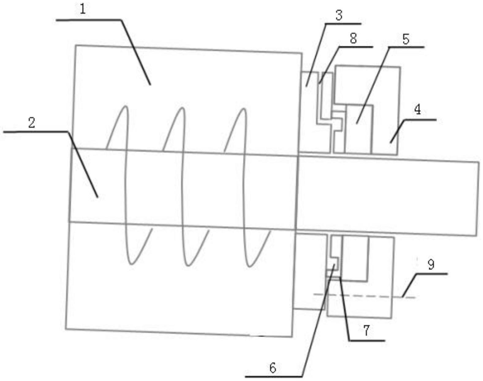 一种改进的蛋白输送螺旋密封轴承室,涉及密封装置技术领域,包括螺旋室,螺旋室内的转轴穿过螺旋室的端部延伸至外部,螺旋室的端部上固接有抵板,抵板上固接有轴承盖板,盖板的内壁上开设有安装槽,安装槽内设有轴承,轴承与抵板之间设有密封圈。本实用新型解决了传统技术中的盘根受压集中,长时间运转,主轴磨损严重;盘根部位密封效果差,主轴磨损后,产生间隙,蛋白粉容易从螺旋室泄露;以及当盘根损坏进行更换时,盘根压盖不易拆卸,维修难度大的问题。