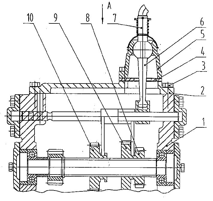 本实用新型涉及拖拉机技术领域,它包括变速箱体,变速箱体与前盖固定连接,变速杆导板和变速杆座体与前盖一侧固定连接,变速杆座体上安装有变速杆组合件,变速杆组合件下端具有变速杆,滑杆I上固定安装有换档拨头I,滑杆II上固定安装有换档拨头II,变速杆下端放置于换档拨头I和换档拨头II构成的凹槽内,在滑杆I上固定连接有变速拨叉I,滑杆II上固定连接有变速拨叉II。本实用新型使拖拉机变速操纵便捷、灵活,可方便的增减变速档位,具有结构简单、变速可靠、使用方便、拖拉机变速操纵机构舒适等优点。