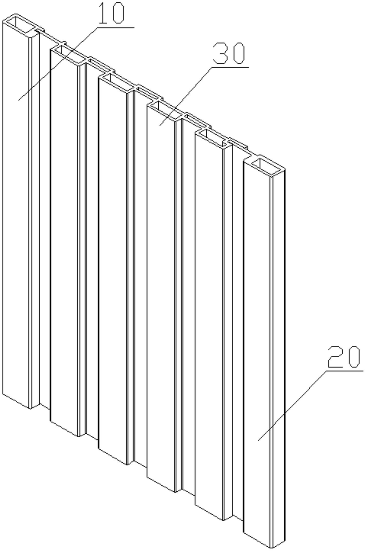 本申请涉及包覆安装的护墙板。本申请所述的包覆安装的护墙板包括:长城板、第一收口条以及第二收口条;所述第一收口条和所述第二收口条分别卡扣在所述长城板的两端;所述长城板的一端形成有主凸条,所述第一收口条上形成有与该主凸条配合的副凹槽;所述长城板的另一端形成有主凹槽,所述第二收口条上形成有与该主凹槽配合的副凸条;所述主凸条夹紧在所述副凹槽内,所述副凸条夹紧在所述主凹槽内;所述第一收口条的截面和所述第二收口条的截面分别呈“口”字形,所述副凹槽形成在所述第一收口条的一侧,所述副凸条形成在所述第二收口条的另一侧。本申请所述的包覆安装的护墙板具有结构强度大的优点。