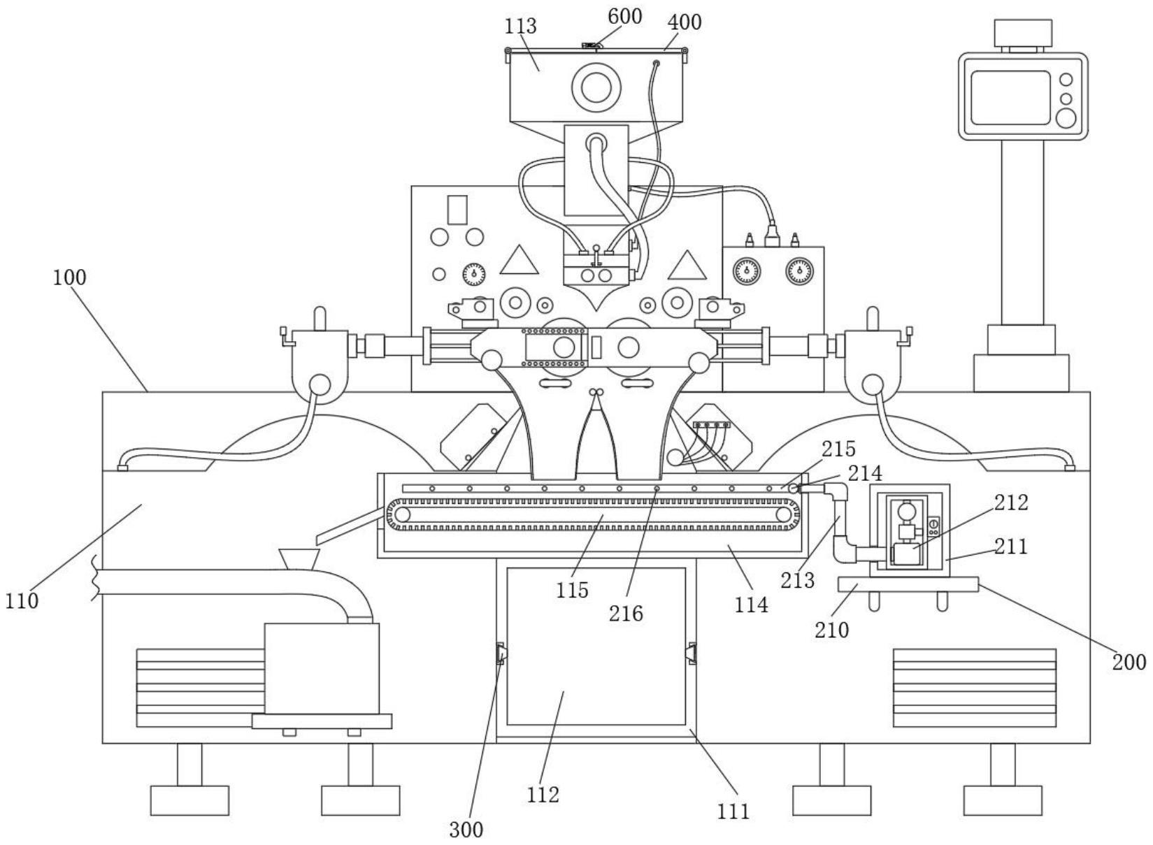 本实用新型涉及制药技术领域,具体为一种软胶囊压丸机制冷装置,包括装置本体,所述装置本体包括压丸机本体,所述压丸机本体的底端设置有回收仓,所述回收仓的内部活动安装有收集箱,所述压丸机本体的顶端固定安装有储料箱,所述压丸机本体的正面固定安装有安装架。本实用新型通过设置有安装板、安装箱、制冷仪、一号输送管、三通连接管、二号输送管和喷头,在胶囊药物生产成型后下落至传送带上,启动制冷仪进行制冷,冷气通过一号输送管、三通连接管和二号输送管的传输,最后从喷头中喷出,对药物进行制冷,同时设置两边一起对药物进行制冷,使制冷的效率更高,进而提升了药物的生产效率,提升了本装置的实用性。