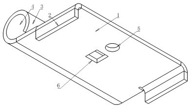 本实用新型涉及金属软管安装技术领域,尤其涉及一种金属软管定位加固结构。本实用新型采用的技术方案是:包括由镀锌板制成的长方形主体配合支撑紧固连接板,主体配合支撑紧固连接板的左右两侧设有一体成型方向向下的安装组合加固支撑连接板,主体配合支撑紧固连接板的后侧上方设有一体成型圆柱形主体配合防护连接柱,主体配合防护连接柱通过折弯的生产方式加工而成,所述主体配合防护连接柱的左侧中心位置形成贯穿零件右侧的圆柱形主体配合连接防护孔。本实用新型的优点是:整体结构简单,加工成本更低,在进行装配时能够配合金属管进行稳定的组合,能够为其提供可靠的配合导向,同时也能够为金属软管配合部分起到可靠的保护。