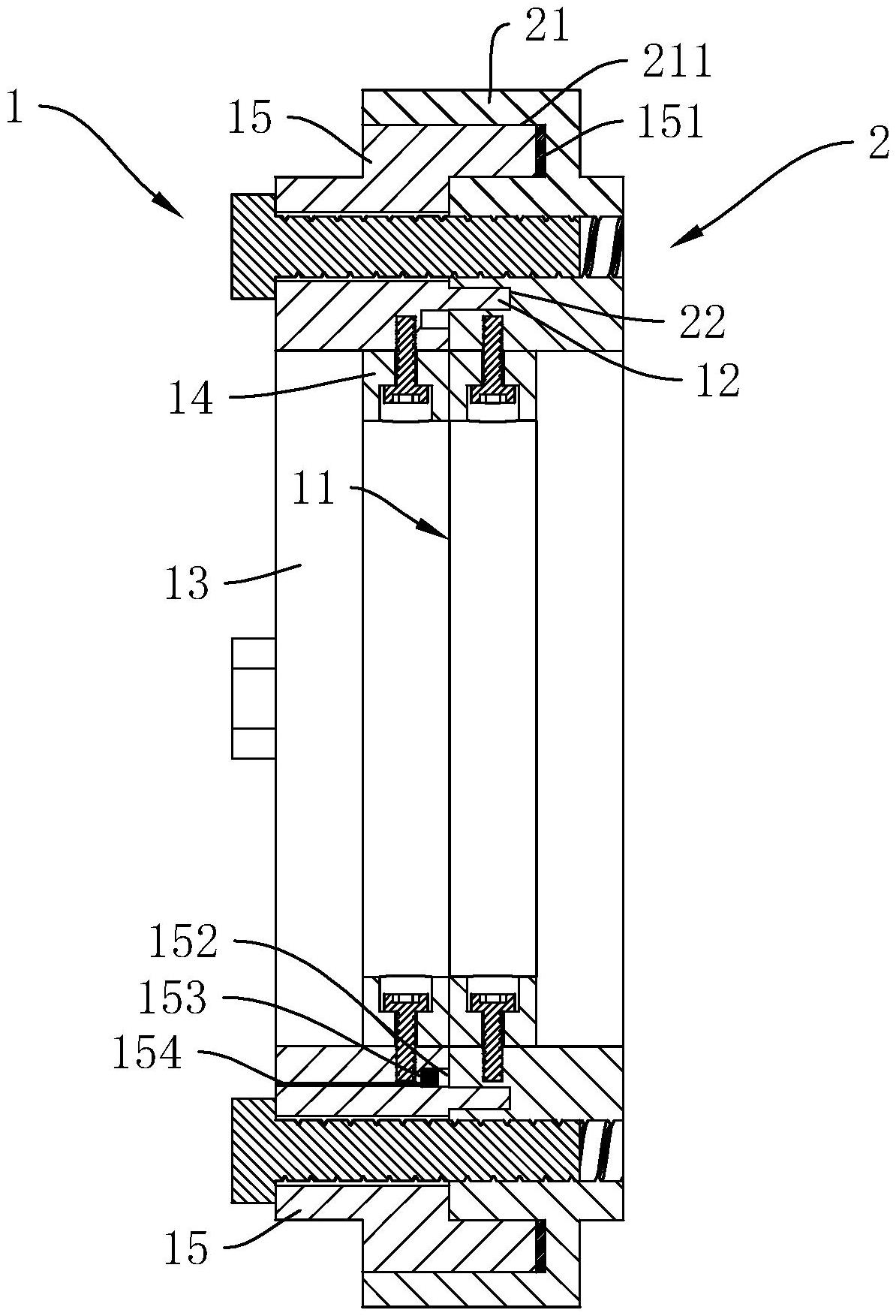 本申请公开了一种法兰结构,涉及管道对接的技术领域。一种法兰结构,包括第一法兰盘和第二法兰盘,第一法兰盘通过螺丝与第二法兰盘对接,第一法兰盘和第二法兰盘的端面上均具有圆柱状的安装腔,且每一安装腔均为贯通设置,每一安装腔内靠近对接侧均设有抵接环,抵接环为橡胶抵接环。本申请能降低物质流经壁厚较大的塑料软管与壁厚较小的钢管对接的位置时出现泄漏的可能。