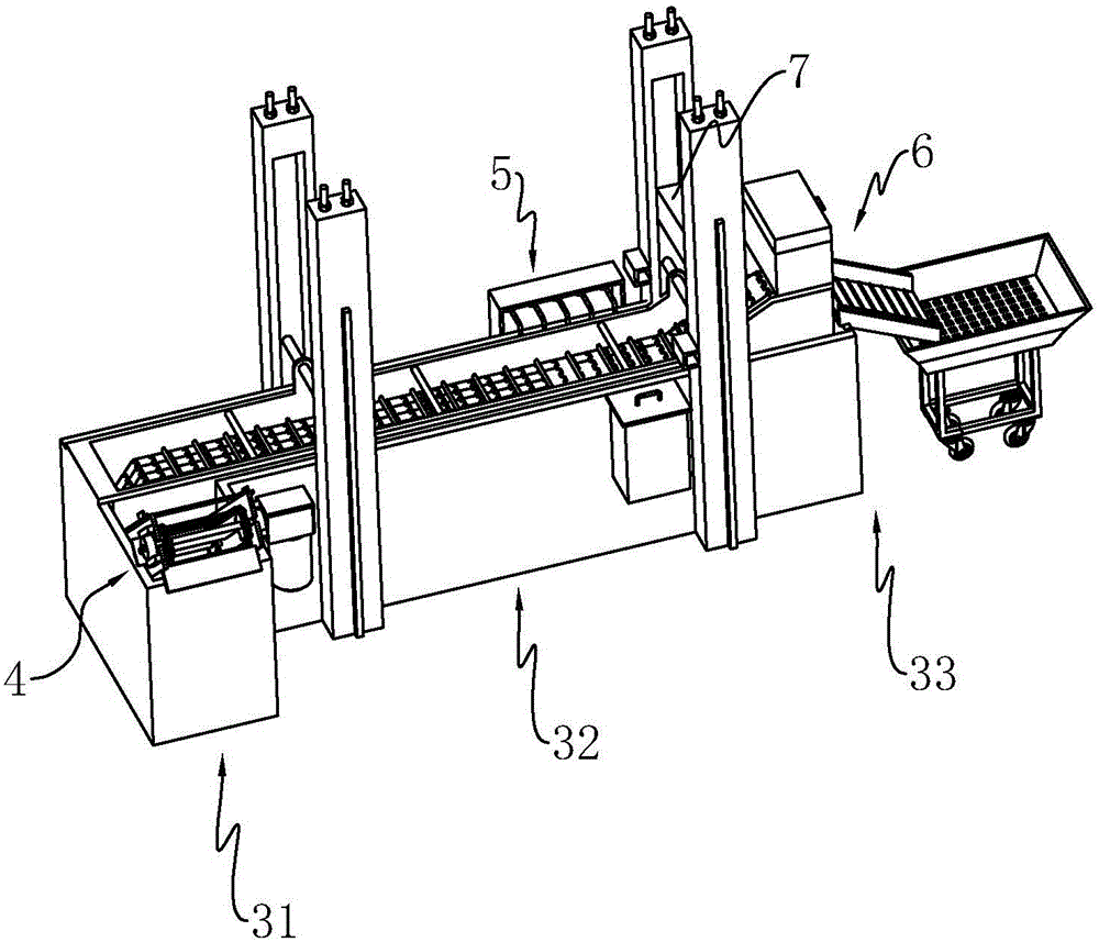 本实用新型公开了一种油炸机,涉及食品加工设备领域,包括进料区、油炸区及出料区,所述出料区设有出料机构,所述出料机构包括链板以及第二驱动组件,所述链板外侧均匀间隔分布有取料板,且所述链板上均匀开设有排油孔;所述链板包括若干呈环绕设置的单板,相邻两所述单板间成型有漏油缝;所述取料板上贯穿开设有漏油孔;所述出料区的末段设有吹扫装置,所述出料区的后段架设有出料斗,所述出料斗出口的下方设有承接箱;所述出料斗的底部凸起成型有弧形凸起,所述承接箱内水平架设有网板,且所述承接箱在网板下方成型有贮油箱。本实用新型提供了能够有效分离产品与油,提高油炸加工效率,降低生产成本的一种油炸机。
