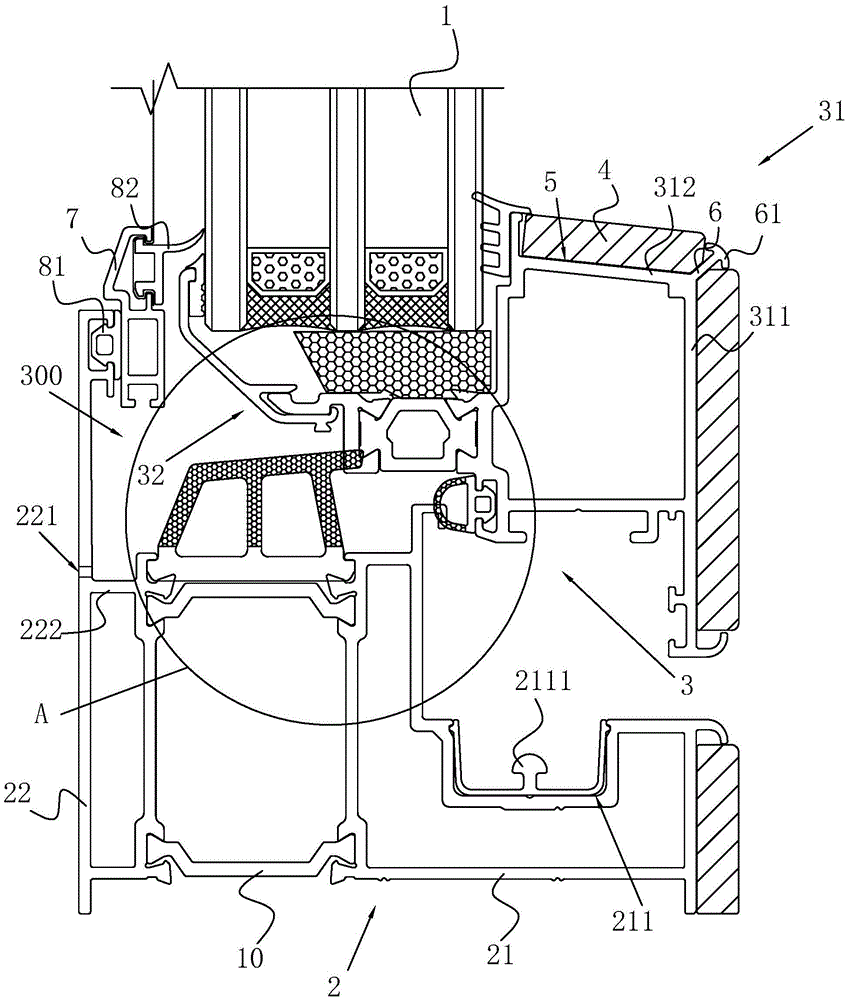本实用新型涉及一种隐扇式下悬推拉窗,属于推拉窗技术领域,包括玻璃板、窗框和窗扇,所述窗扇安装在窗框上,所述玻璃板安装在窗扇上,所述窗框包括第一断桥框和第二断桥框,所述窗扇包括第一断桥扇和第二断桥扇;所述第一断桥扇和第一断桥框上均设置有装饰板。在第一断桥扇和第二断桥框上设置装饰板,避免直接显露出银白色的铝合金型材,且装饰板与室内木质家具更加匹配,有效地提高整体的装饰性和美观性;同时由于铝合金良好的导热性能容易造成了室内外热量的快速传导,使得房屋建筑的保温性能受到影响;而装饰板的设置,有效地起到隔热的效果,减小室内外的热交换,起到节能保温的效果。