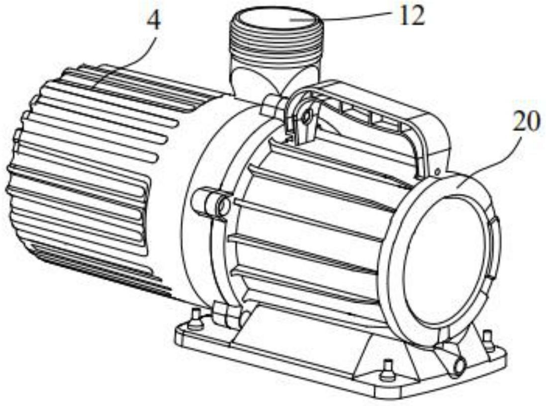 本实用新型涉及一种用于水族或园艺的水泵,包括蜗壳部、电机部和叶轮,蜗壳部设有泵房、进水口和出水口;电机部包括电机外壳、电机定子、电机转子和支撑座,支撑座包括支撑板和支撑套,支撑板设于蜗壳部与电机外壳之间,电机定子套设于支撑套的周部并与电机外壳连接,支撑套与支撑板之间形成转子室,电机转子转动设于转子室,且电机转子的第一端穿过支撑板并延伸至泵房内;安装于电机转子的第一端;电机转子包括陶瓷轴和永磁转子,永磁转子与转子室的内壁之间具有间隙,支撑板设置有第一过水通道,泵房内的水通过第一过水通道进入转子室,陶瓷轴设置有第二过水通道,转子室内的水通过第一过水通道进入泵房中,具有散热性好和可靠性高的特点。