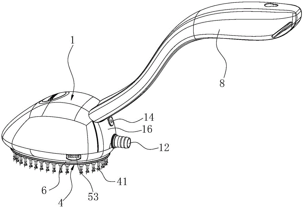 本实用新型公开一种清洁器,包括上壳、底座和毛刷座,其中,上壳的底部设置有安装口,底座设置在安装口上,底座与上壳之间形成有容纳水泵组件的容纳腔,底座上设有进水口,底座或上壳上设置有排污口,水泵组件连通进水口和排污口,用于将清洗的污水排出,毛刷座通过第一卡扣组件固定在底座背离上壳的一侧面,毛刷座背离底座的一侧面设置有刷毛。通过设置第一卡扣组件连接底座和毛刷座,使得毛刷座能够便于拆卸和安装,当毛刷座上的刷毛磨损后,只需要拆卸下毛刷座进行更换即可,降低了维护成本和难度。