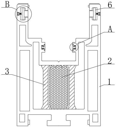 本实用新型涉及型材技术领域,尤其为一种具有密封结构的塑钢型材,包括型材本体,所述型材本体内部中央固定连接有吸音板,所述吸音板左右两侧设有隔热层,所述隔热层上下端面均与型材本体固定连接,所述吸音板上方左右两侧均设有密封板,所述密封板内部均固定连接有呈上下分布的导向柱;本实用新型中,通过设置的吸音板、隔热层、密封板和导向柱,吸音板和隔热层不但可以实现隔热和吸音的作用,同时还有具有支撑型材的目的,避免其变形,而设置的密封板可以与窗户本体紧密接触,具有很好的密封作用。