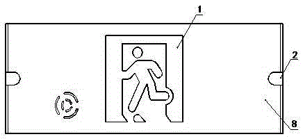 本实用新型公开了一种消防应急壁挂标志灯,包括前盖板和后盖板,其特征在于设有控制单元、图形照明单元、图形导光板、接线板和固定盖,所述后盖板一端面与前盖板经卡扣和卡槽固定连接,另一端面与固定盖固定卡接,所述前盖板和后盖板间设有控制单元、图形照明单元和图形导光板,所述后盖板和固定盖间设有接线板,所述接线板上设有接线插头和接线端子,所述图形照明单元与控制单元相连接,所述控制单元经接线端子与接线板相连接,所述接线板经接线插头与接线盒内的导线相连接,所述图形导光板经导光板固定座与前盖板固定连接,本实用新型具有结构新颖、体积小、安装方便、结构简单、固定可靠、外形美观等优点。
