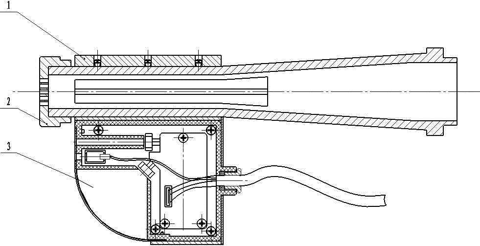 本实用新型提供一种消防水炮用新型红外探测定位器,包括安装盒,其中在安装盒的上部水平设有炮管安装孔,炮管安装在炮管安装孔内,在安装盒的下部内置有定位盒总成,定位盒总成又包括壳体和上盖,在由壳体和上盖围成的腔室内部设置有激光器、红外管和主控板,腔室的后侧留有出线口,所述安装盒的下部是一个一面敞开、五面封闭的腔体,即安装盒下部的前端面具有敞口,后端面采用挡片封堵,定位盒总成则位于该腔体内;在敞口处贴附有防护膜,防护膜压板将防护膜压紧并与壳体紧密连接,在防护膜压板上还设有与垂直定位孔、激光定位孔、水平定位孔一致的孔位。本实用新型适用更多的场所,比如粉尘较多、空气潮湿及风流动较大的场所,探测定位准确、可靠。