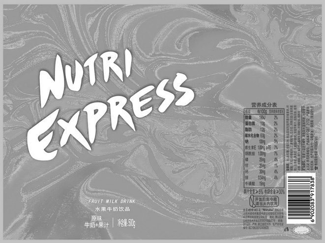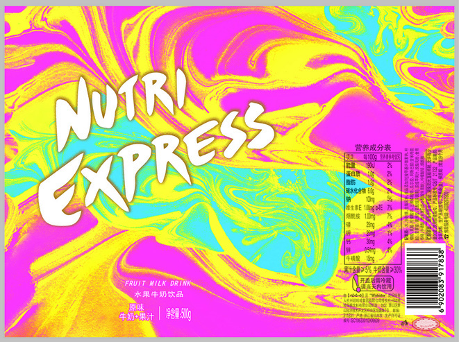 1.本外观设计产品的名称:标签(炫彩版营养快线原味)。2.本外观设计产品的用途:饮料的包装容器上。3.本外观设计产品的设计要点:在于图案与色彩的结合。4.最能表明设计要点的图片或照片:设计1主视图。5.请求保护的外观设计包含色彩。6.本外观设计产品为平面产品,省略其他视图。7.指定设计1为基本设计。8.外边缘灰色边框部分呈透明状。