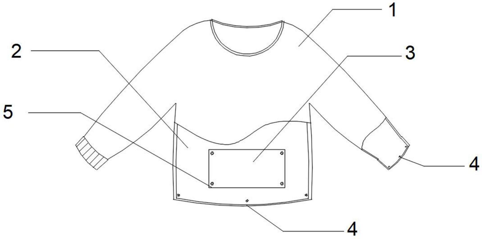 本实用新型涉及婴儿服饰技术领域,特别涉及一种感温婴儿服饰;包括外衣和内衬,所述内衬套接于外衣内,且内衬与外衣之间可拆卸连接,所述内衬上对应人体腹部的位置可拆卸连接有感温加热装置。本实用新型设置外衣和内衬,拆卸方便,清洗方便;通过设置感温加热装置,便于监测婴儿腹部的温度,并将温度值馈至操作面板,根据操作面板预设的温度阈值,当温度值低于温度阈值时,操作面板控制感温加热装置进行加热,当温度值高于温度阈值时,操作面板控制感温加热装置停止加热,解决了婴儿的肚子易受凉,婴儿服饰不能够为婴儿的腹部保暖的问题。