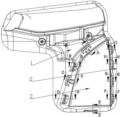 本实用新型公开了一种车灯灯罩与车体部件的连接结构,涉及车灯技术领域,包括保险杠、保险杠支架、挡泥板、挡泥板支架、车灯灯罩;在车灯灯罩的各边沿处均设置有相应的连接挂钩,用于将车灯灯罩不需要使用螺钉等即可牢固的固定在车体上,而且可以在需要拆卸维修时方便拆卸,并不会对周围的部件产生损坏。