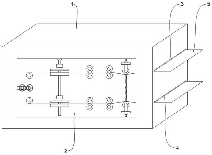 本实用新型涉及面料加工相关技术领域,具体是一种服装面料的熨烫装置,包括箱体,所述箱体内腔通过设置压紧组件与引导辊及转向辊配合来对面料本体进行张紧处理,通过设置转向辊与双向熨烫组件来对面料本体两侧进行熨烫处理,熨烫效果更好,通过设置清理组件来对运输中的面料本体进行熨烫处理,进一步提高了双向熨烫组件的熨烫效果,整体装置结构简单且操作方便,对面料本体的熨烫效果更好,具有更强的实用性。