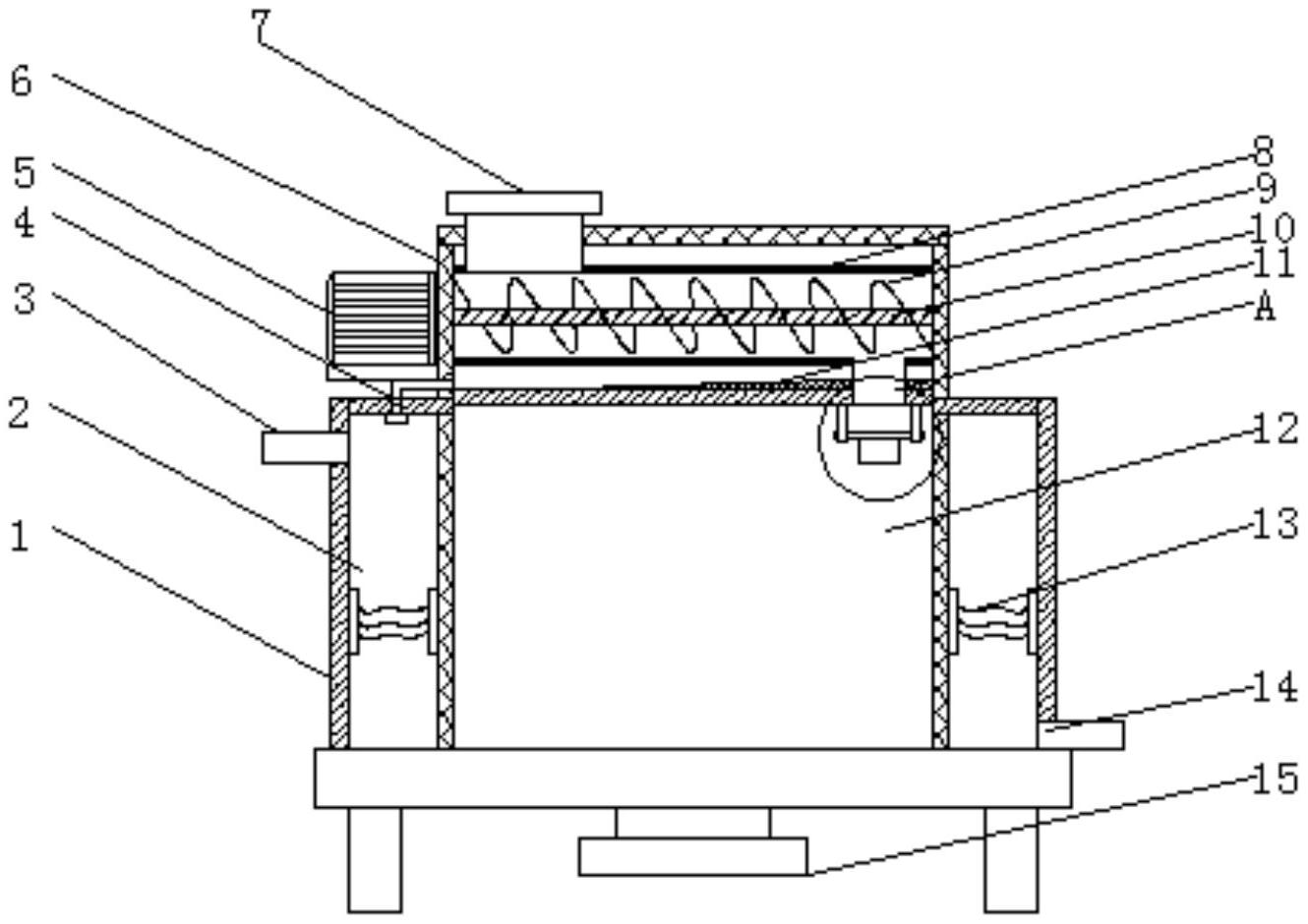 本实用新型公开了一种用于制备贝壳粉涂料的煅烧装置,包括装置主体,所述装置主体内部的中间位置处固定安装有煅烧箱,所述装置主体内部的上端固定安装有甩干箱,所述甩干箱内部的中间位置处安装有滤网筒,所述滤网筒的两端分别与所述甩干箱内壁的两侧固定连接,所述滤网筒内部的中间位置处穿插有旋转轴,所述旋转轴的一端位于所述甩干箱的外侧,所述旋转轴的表面套设有输送螺纹,所述滤网筒表面下端的一侧固定安装有下料管,所述下料管的下端穿过依次所述甩干箱下端和所述煅烧箱的上端,所述下料管内部下端的中间位置处活动安装连接栓。本实用新型通过设置一系列的结构使得本装置具有煅烧效果好的特点。