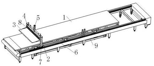 本实用新型涉及一种分条机自动接料设备,属于钢板机械加工技术领域。储料架上部设置有移动架,所述移动架中部固定有接料板,所述接料板上部设置有压料板和压料气缸,所述压料板连接压料气缸的动力输出端;所述接料板上设置有光电开关,所述储料架上部两侧设置有导轨,移动架下部对应位置设有滑块,所述滑块连接同步带。本实用新型通过分条机自动接料设备,实现分条机接料全自动,无需依靠人力,降低安全风险。