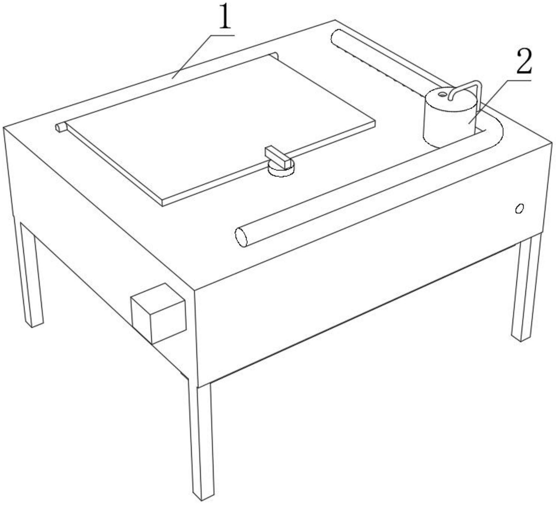 本实用新型涉及组织块切割技术领域,公开了一种干细胞培养用切割规整的组织块切块装置,包括切割机构和设置在切割机构内的清理机构,切割机构包括箱体和设置在箱体内部的固定组件、第一切割组件与第二切割组件,固定组件包括设置在箱体底部内壁的底座和嵌合设置在底座上的第一夹板,底座和第一夹板上均匀分布有上下贯穿的竖槽,第二夹板上均匀分布有上下贯穿的横槽,第一驱动杆上均匀分布有与横槽相对应的第一刀片,第二驱动杆上均匀分布有与竖槽相对应的第二刀片,第一伸缩气缸伸缩运动配合第一电机和第一刀片对组织块进行横向的切割,第二伸缩气缸伸缩配合第二电机和第二驱动杆对组织块进行竖向的切割,切割均匀且工作效率高。