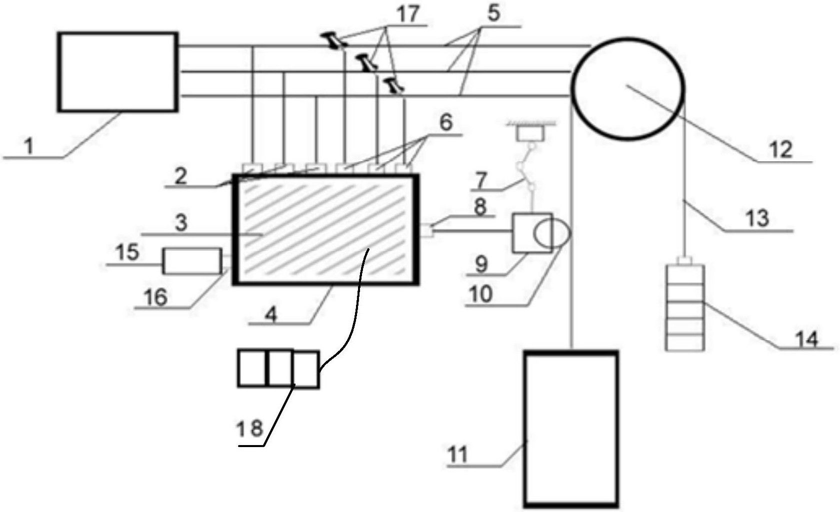 本实用新型公开了一种电梯平衡系数检测仪,其包括三相交流电源、三相电压输入端口、机具、电缆、三相交流电流传感器输入端口、万向杆、速度传感器输入端口、速度传感器、滚轮、钳形电流互感器,三相交流电源通过电缆连接一个曳引机转轮,电梯曳引机通过至少一个转盘拖曳至少一根钢丝绳移动,电梯钢丝绳的一端连接一个电梯轿厢。本实用新型的检测结果准确度高,误差小。