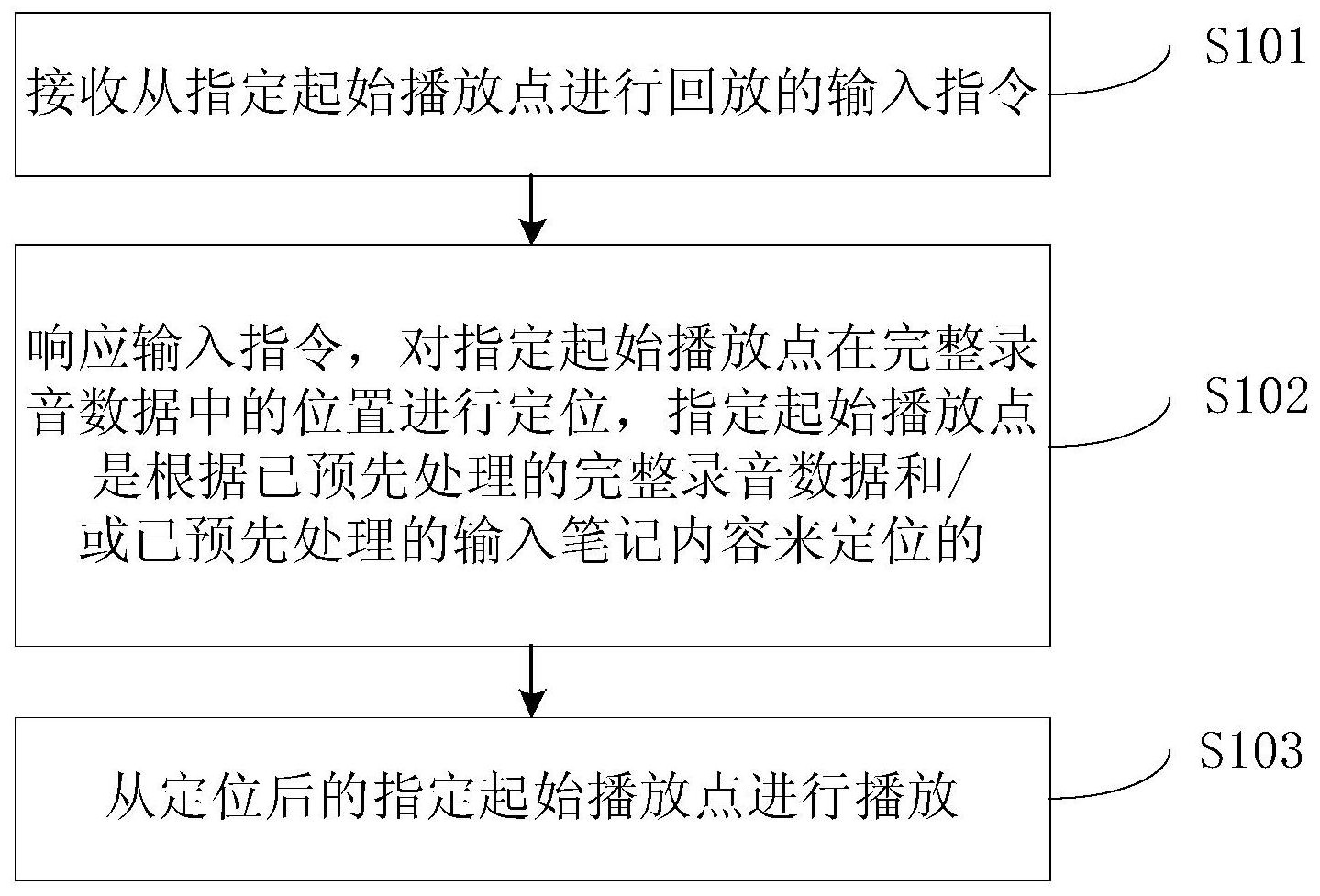 本申请公开了一种录音回放的方法、移动终端及具有存储功能的装置,该方法包括:接收从指定起始播放点进行回放的输入指令;响应所述输入指令,对所述指定起始播放点在完整录音数据中的位置进行定位,所述指定起始播放点是根据已预先处理的完整录音数据和/或已预先处理的输入笔记内容来定位的;从定位后的所述指定起始播放点进行播放。上述方法中,在需要回放录音时,直接根据已预先处理的完整录音数据和/或已预先处理的输入笔记内容对指定起始播放点进行定位,从而从定位后的指定起始播放点进行播放,无需用户再反复拖动进度条对需要播放的内容进行定位,能够减少用户的使用麻烦。