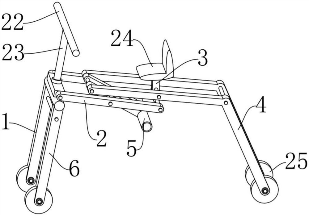 本实用新型公开了一种双摇杆行进装置,包括前腿驱动装置、连接装置、摇杆一、后腿驱动装置和脚踏,所述连接装置设于前腿驱动装置上,所述后腿驱动装置设于连接装置上方,所述摇杆一设于后腿驱动装置与连接装置之间,所述脚踏设于连接装置上,所述前腿驱动装置包括前腿、稳固杆和承载柱,所述前腿对称设于承载柱下方,所述稳固杆设于前腿之间。本实用新型属于骑乘玩具技术领域,具体是提供了一种结构简单、装配简洁便捷、减少维护成本,可以趣味摇动且摇动幅度可以调节的双摇杆行进装置。