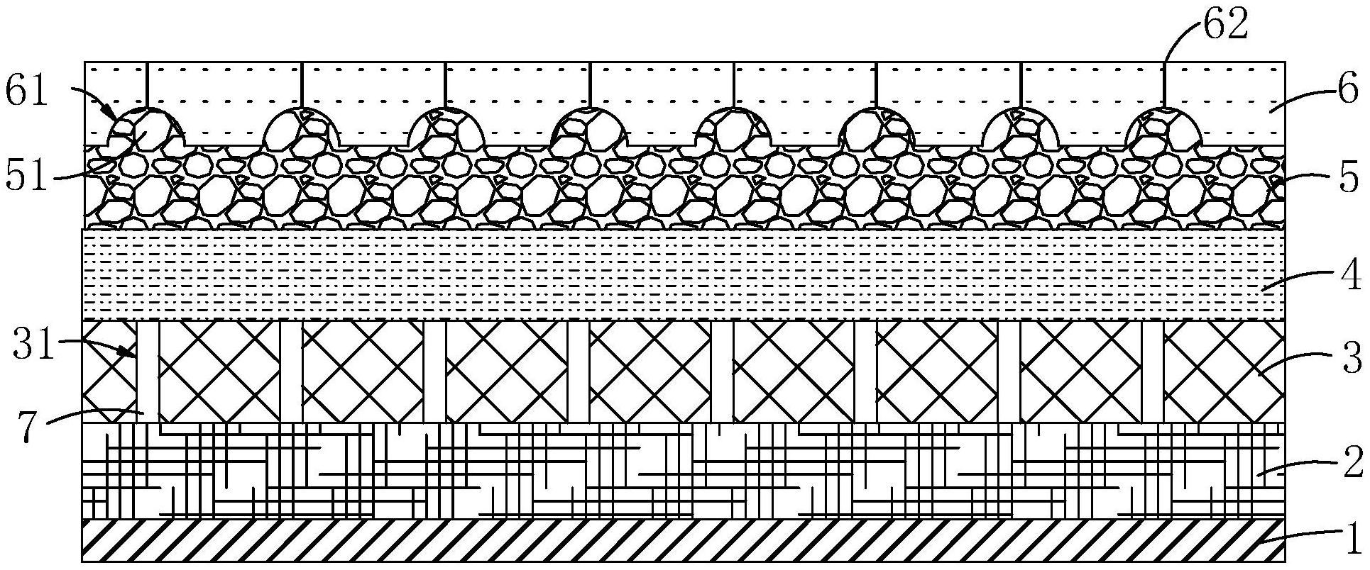 本申请涉及一种凉感面料,其包括内致外依次包括清凉涂层、亲疏水面料层、耐磨网层、芯吸导湿层和储水层和外层,所述耐磨网层设有网孔,所述网孔内嵌设有活性炭颗粒。本申请具有让皮肤表面产生“清凉”的感受的效果。亲疏水面料层能够吸收人体肌肤表面的汗水,带着人体表面散发的热量汗水远离皮肤表面。汗水通过亲水面料传递到下一层,而亲水材料与疏水材料编制而成的面料可以在导出汗水的同时降低肌肤的湿润感和黏着感。耐磨层可以增强了面料整体的抗拉扯强度,耐磨层网孔内的活性炭颗粒加快汗水的吸收的同时可以对汗水进行过滤,减少衣物外表面汗渍的形成。面料的多层结构的叠加可以降低外部传到至皮肤表面的热量的效果。