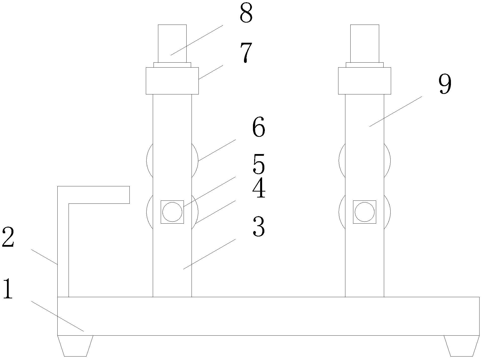 本实用新型公开了一种共混薄膜的四辊压延成型机构,包括底座,所述底座顶部的左侧固定安装有L形导向台,所述底座的顶部且位于L形导向台的右侧固定安装有第一U形安装架,所述底座的顶部且位于第一U形安装架的右侧设置有第二U形安装架。本实用新型通过第一U形安装架、第二U形安装架及安装在第一U形安装架和第二U形安装架内部的第一辊筒和第二辊筒之间的配合实现对共混薄膜进行压延成型,同时通过步进电机和拱形安装架调节第二辊筒与第一辊筒之间距离实现对薄膜的厚度进行生产,同时通过第二U形安装架相对于第一U形安装架的调节,同时解决了现有的压延成型机构不方便对相对之间的距离进行调节,从而影响使用的问题。